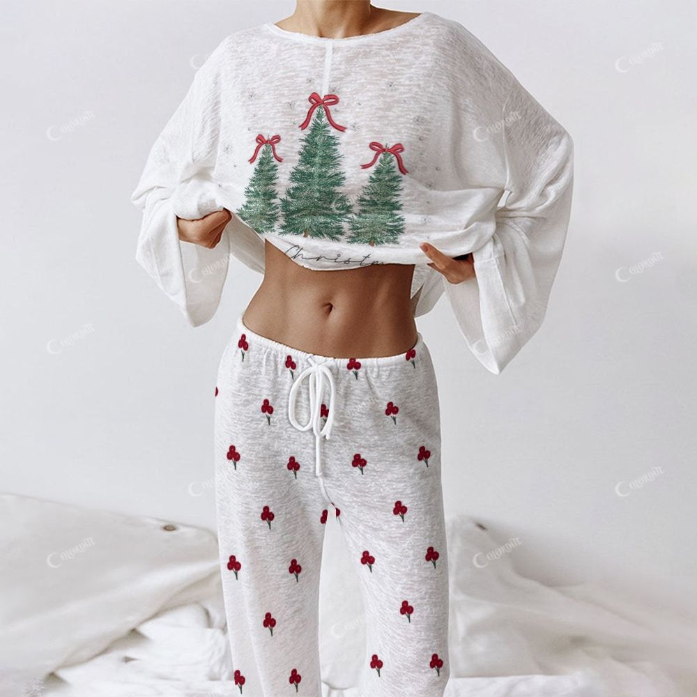 Christmas Tree Bow Red Star Women's Long Sleeve Homewear Set