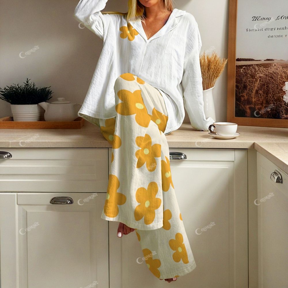 Women's Romantic Sunshine Flowers Print Cardigan Homewear Set