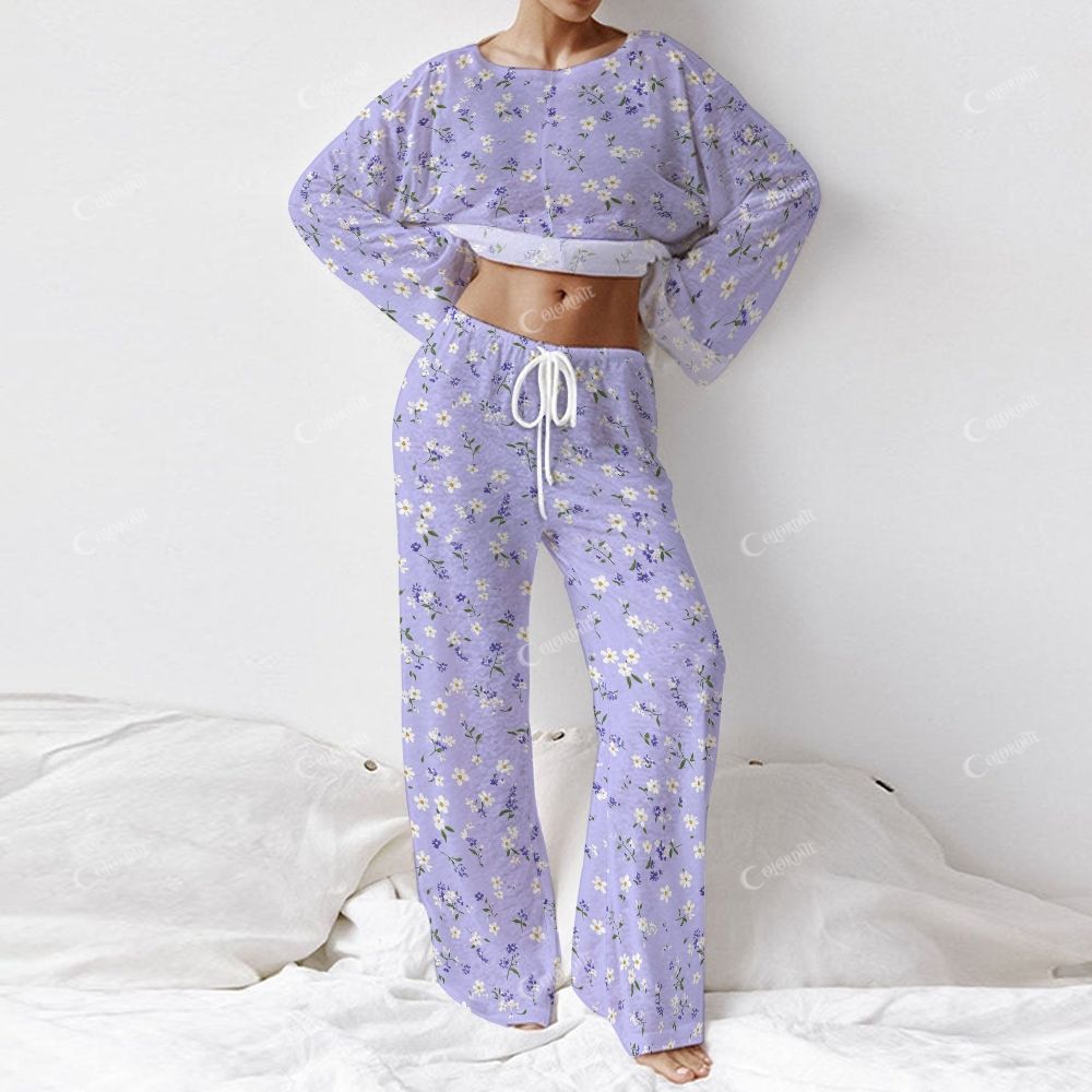 Women's White Flower Print Long Sleeve Homewear Set