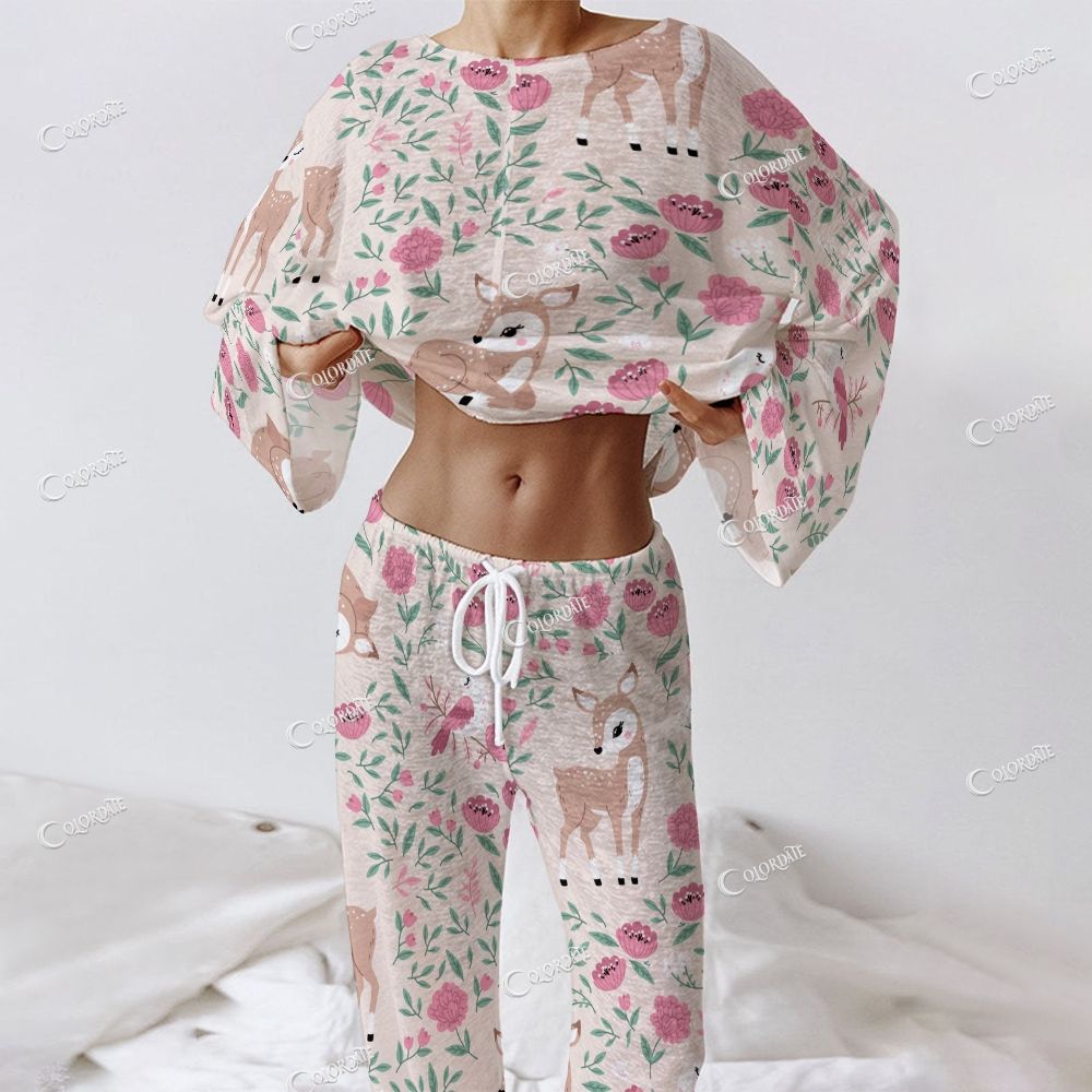 Women's Elk And Floral Prints Long Sleeve Homewear Set
