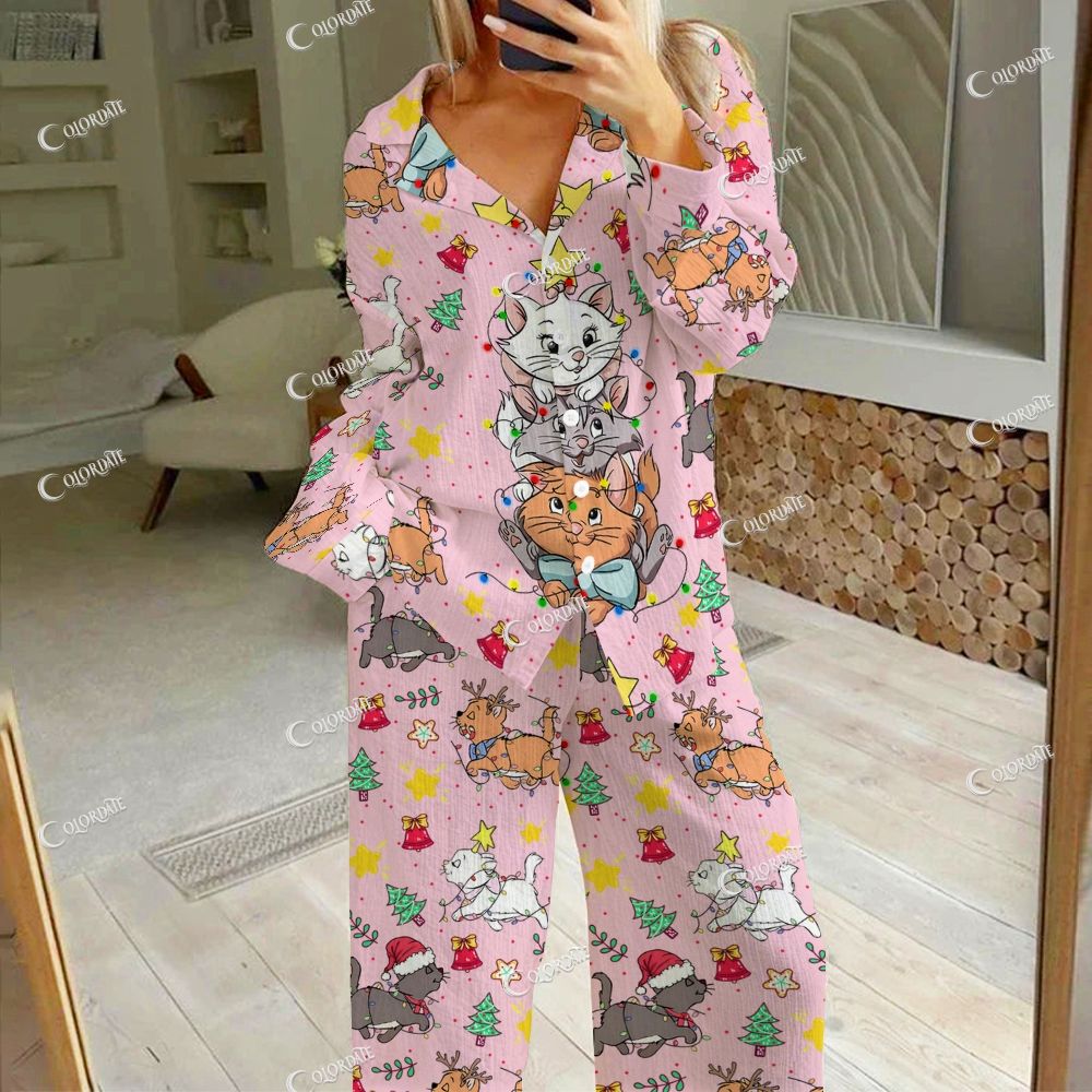 Women's Cute Cat Print Cardigan Homewear Set