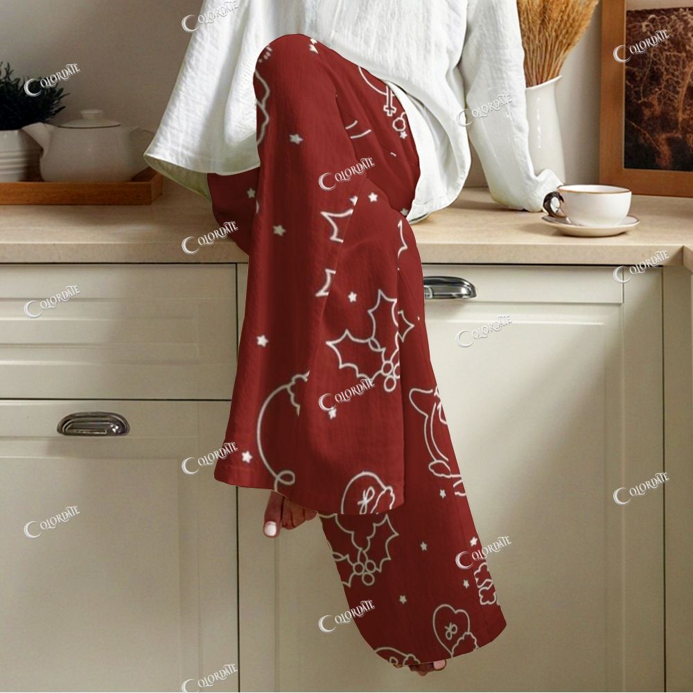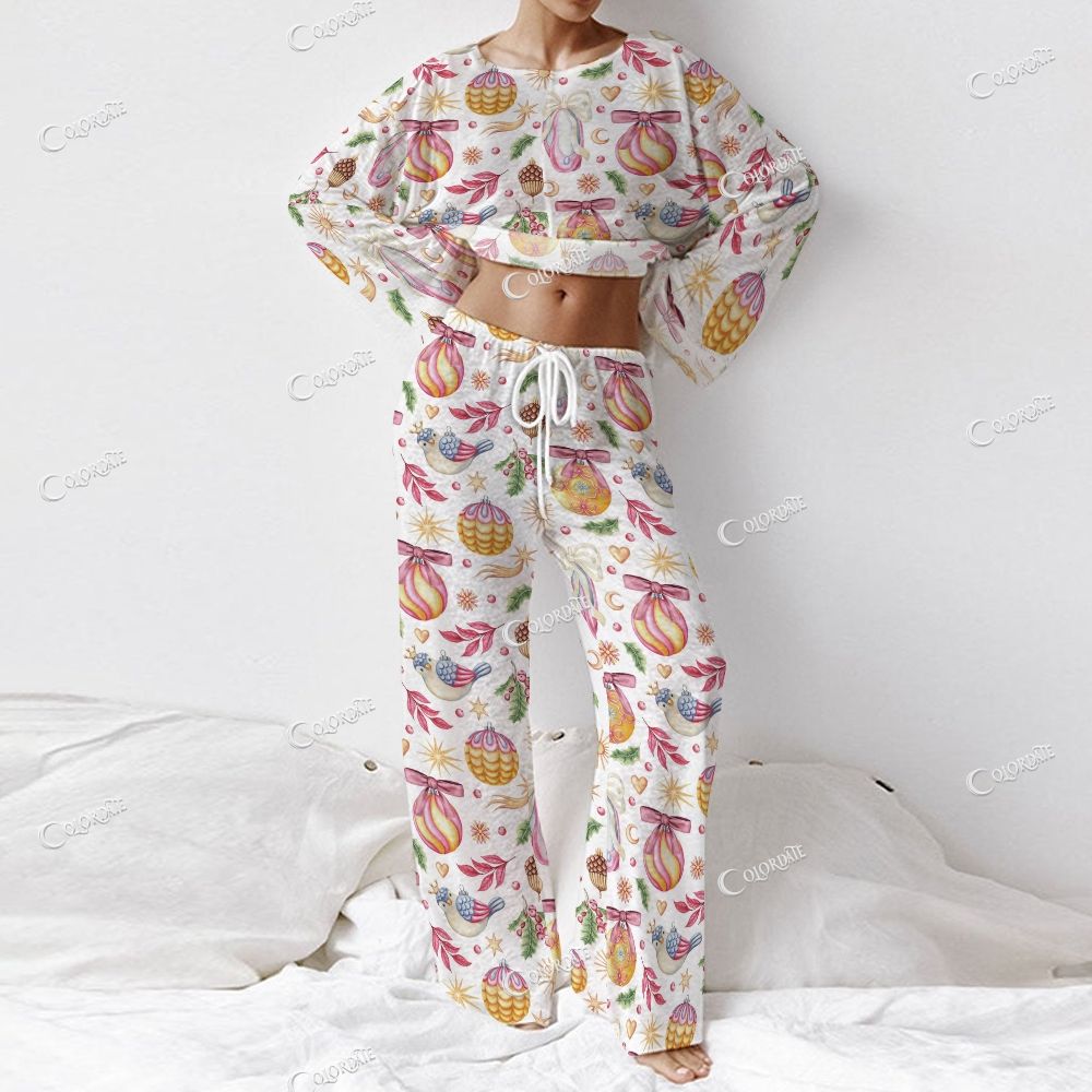 Colordate Women's Christmas Pattern Print Long Sleeve Homewear Set