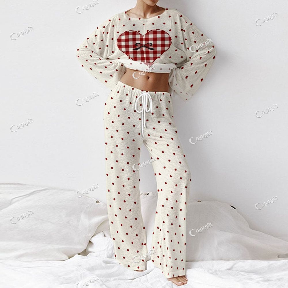 Colordate Women's Heart And Polka Dot Prints Long Sleeve Homewear Set