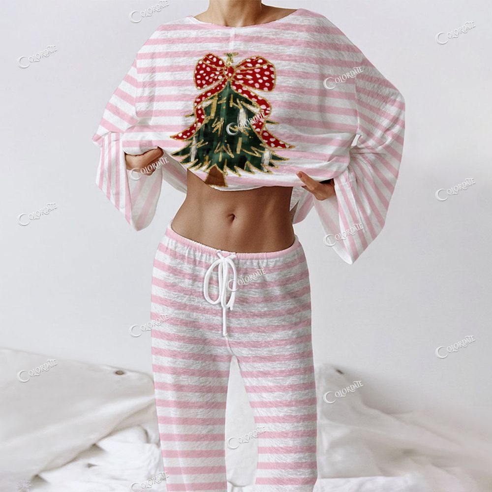 Women's Christmas Striped Tree Long Sleeve Homewear Set