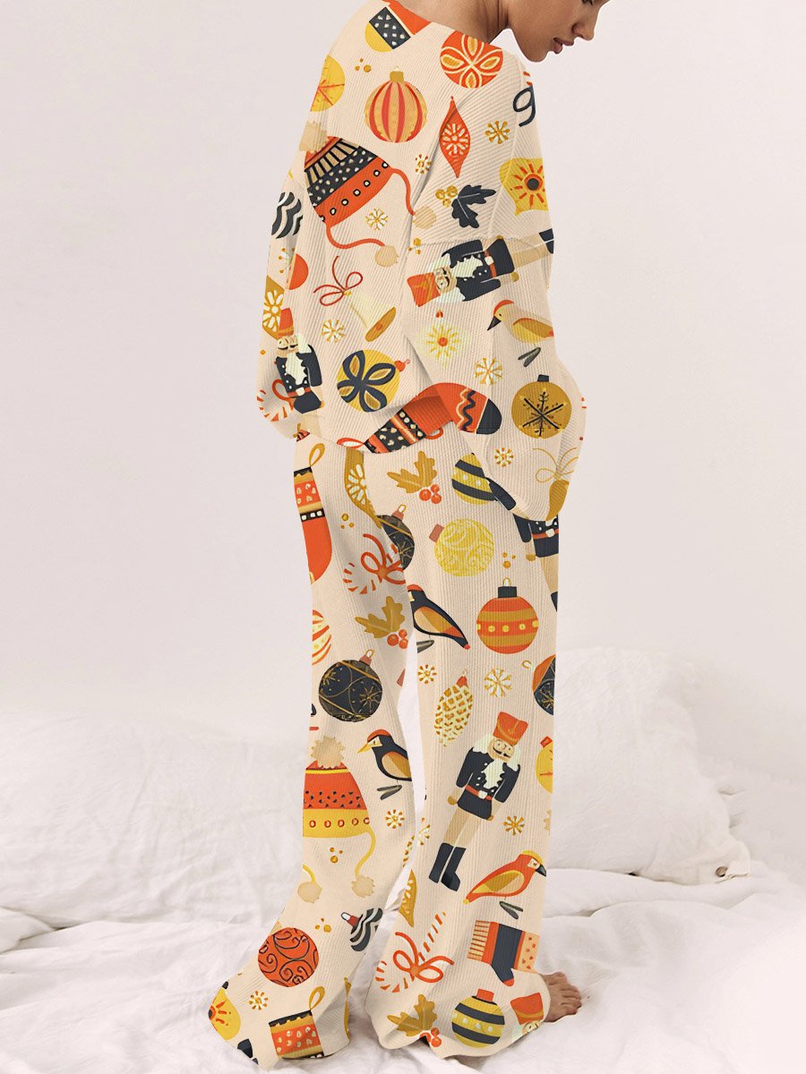 Colordate Women's Nutcracker Print Long Sleeve Homewear Set
