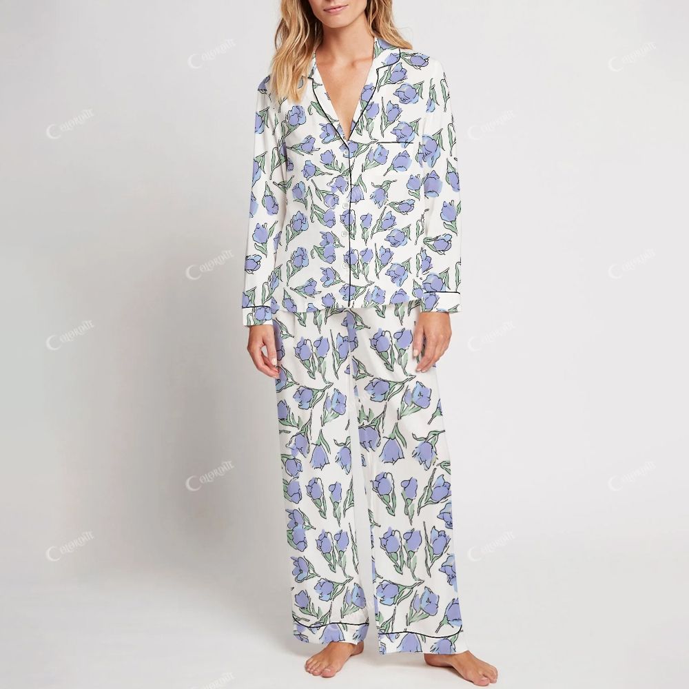 Colordate Women's Purple Flower Print Home Long Sleeve Suit