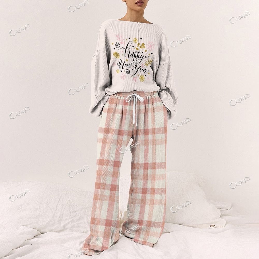 Women's Colorful Plaid Long Sleeve Home Suit