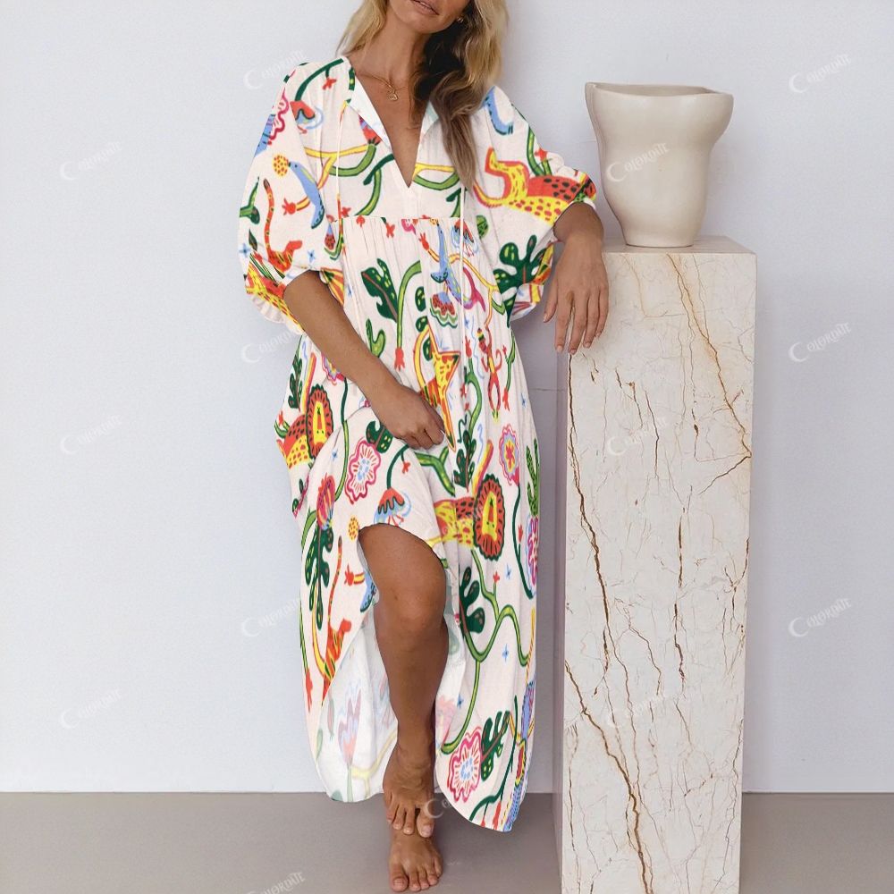 Whimsical Animal and Floral Pattern Women's casual nightdress