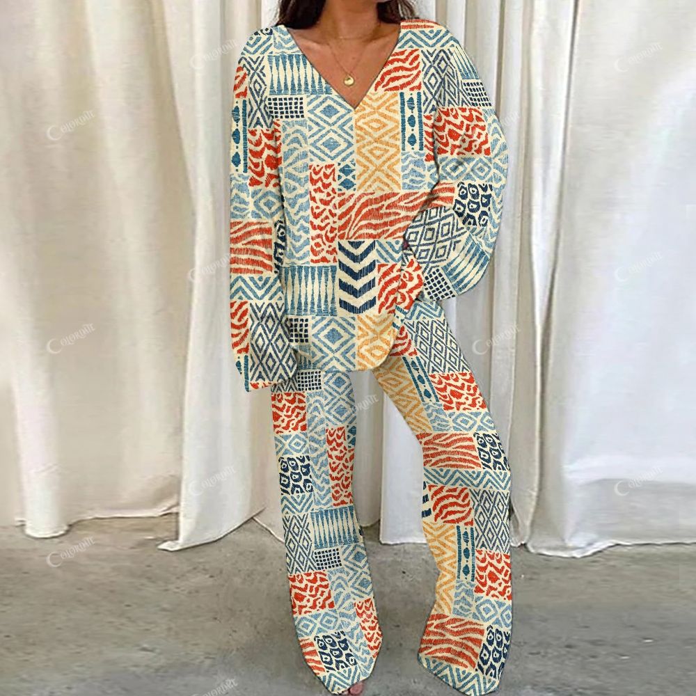 Mosaic Geometric Pattern Loungewear Set For Women
