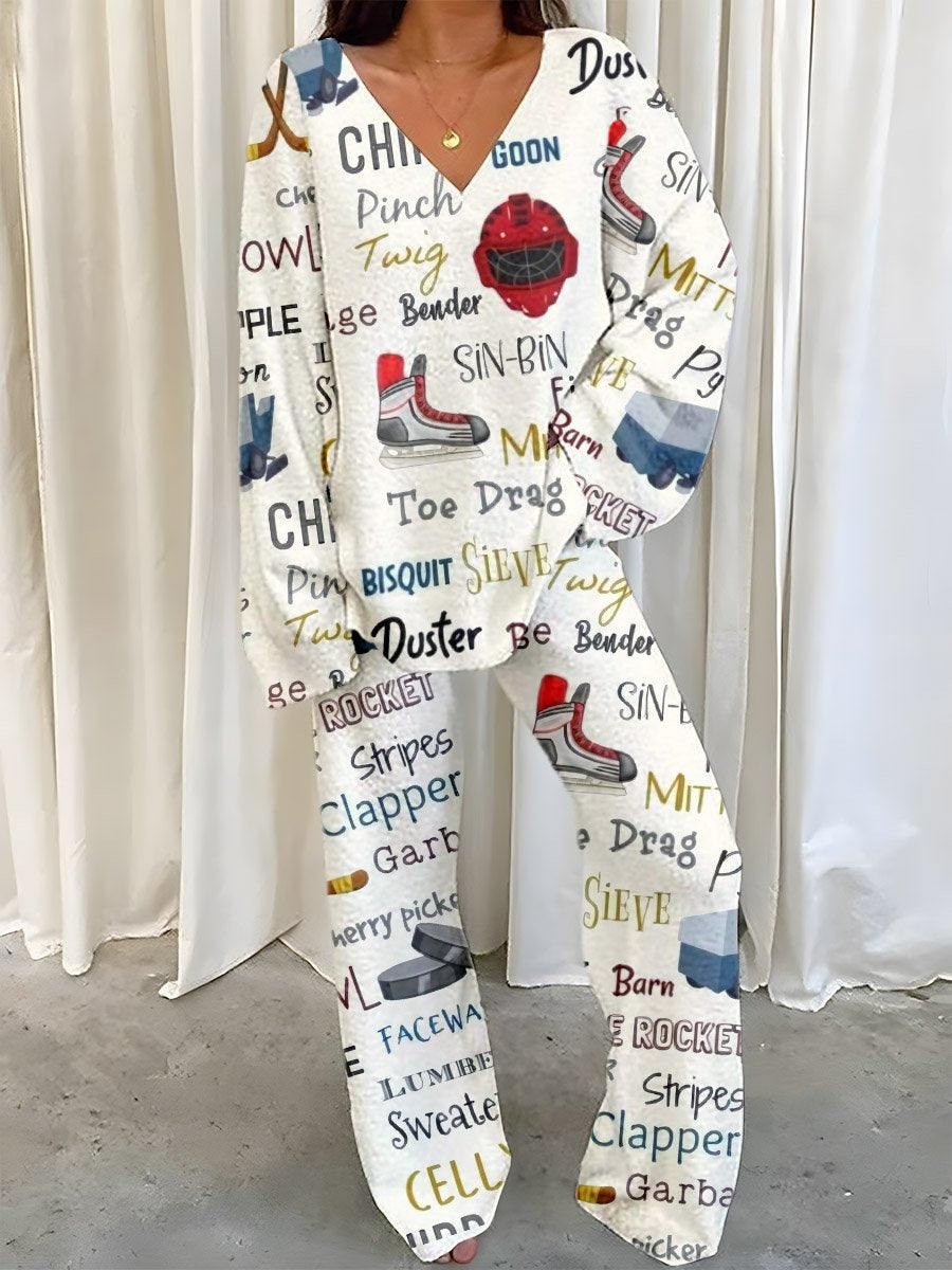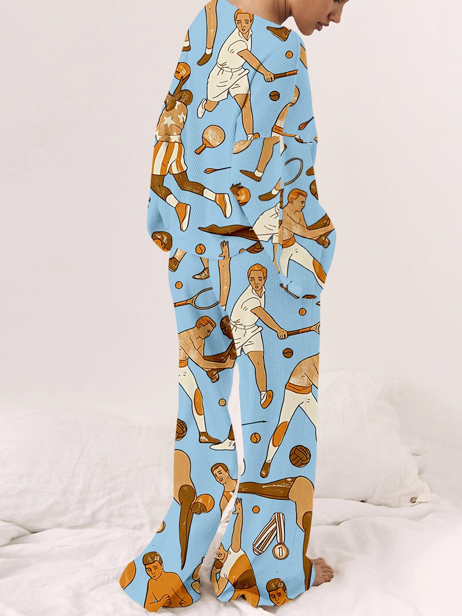 Women's Art Painting Rugby Print Home Long Sleeve Suit