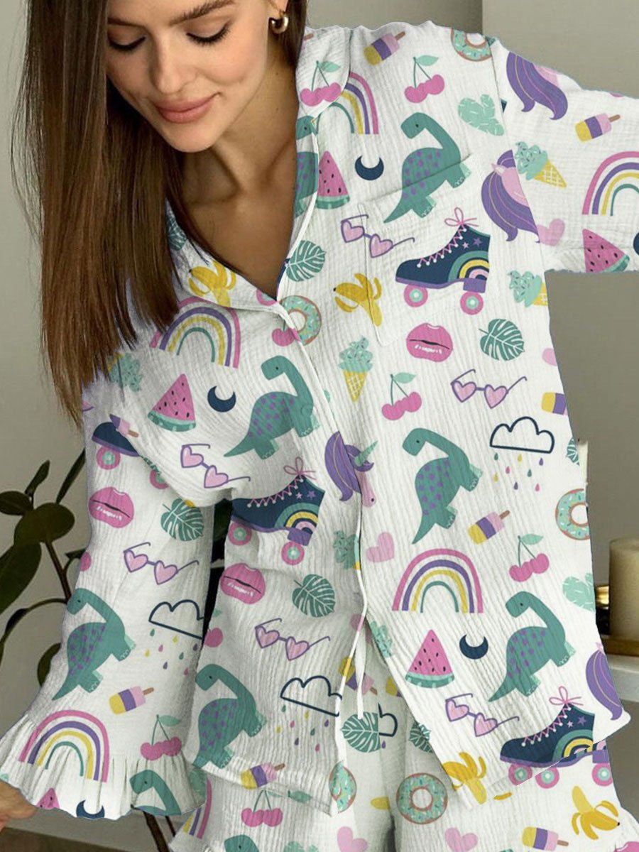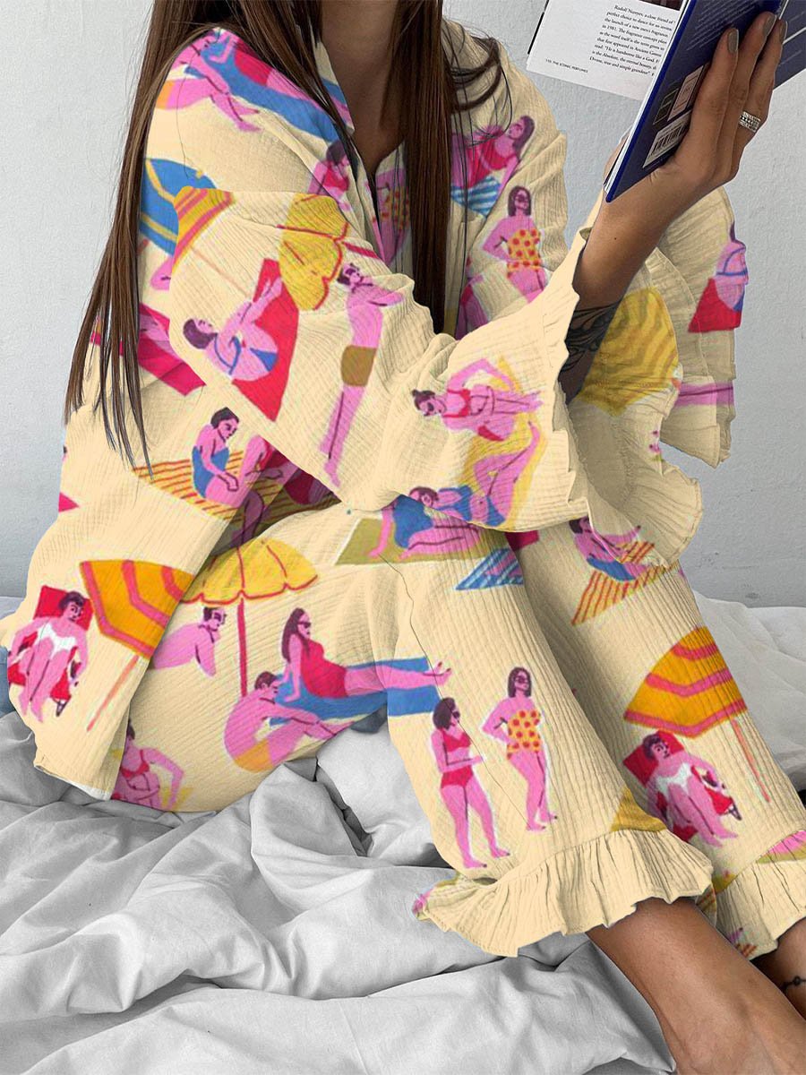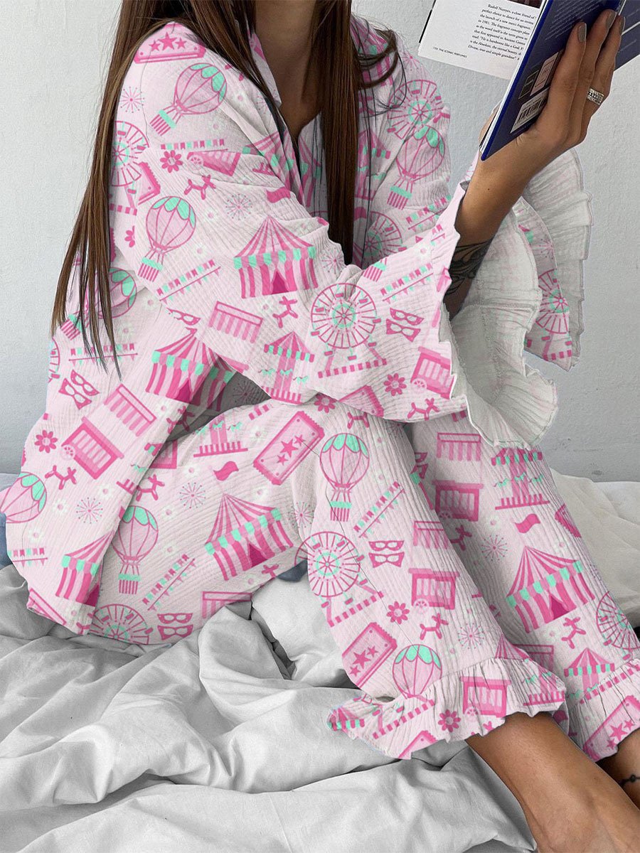 Yoga 36 Style Printed Ruffle Pajamas