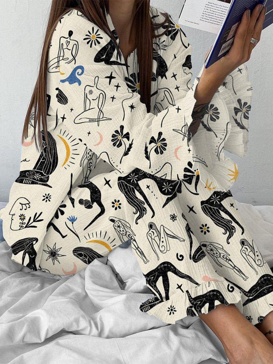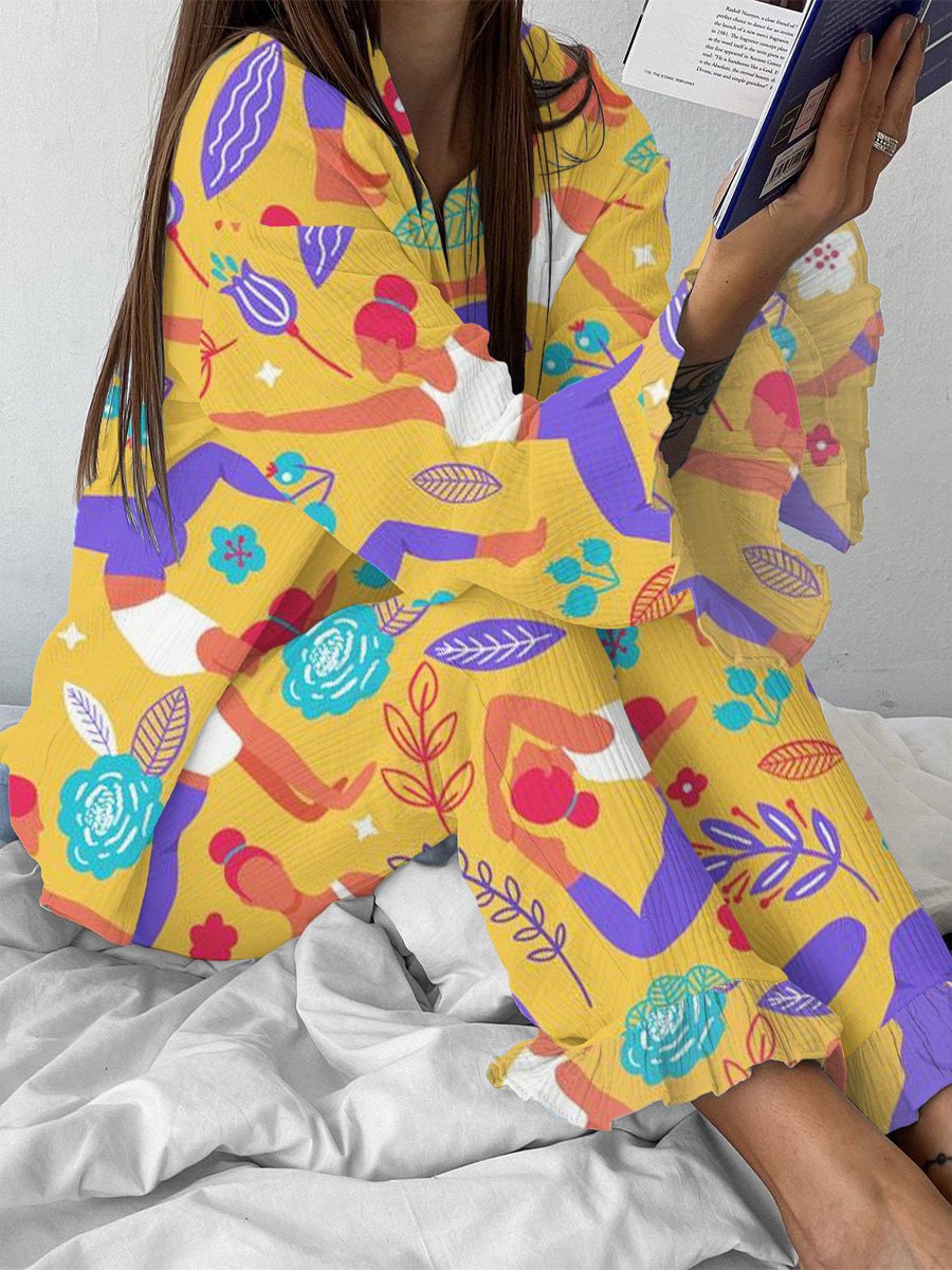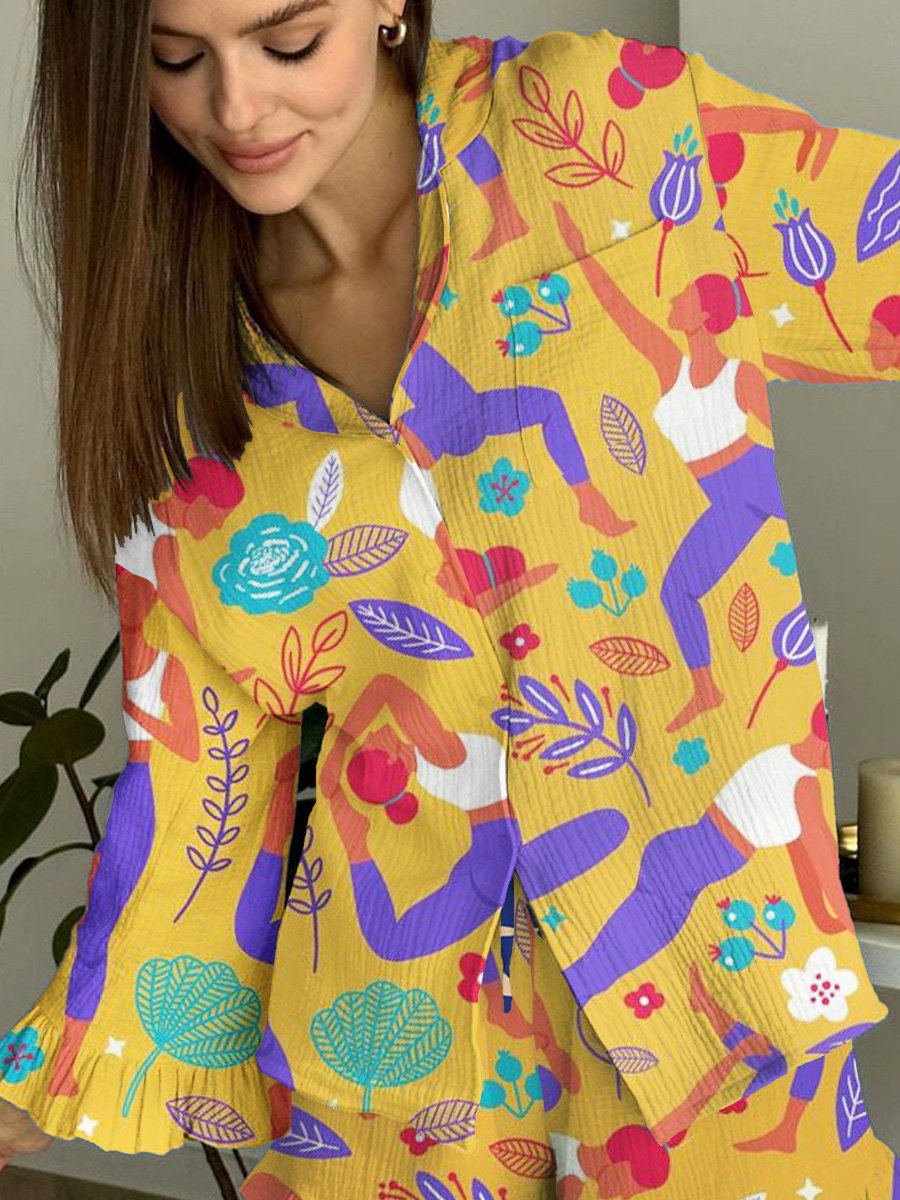Yoga Portrait Printed Ruffle Pajamas