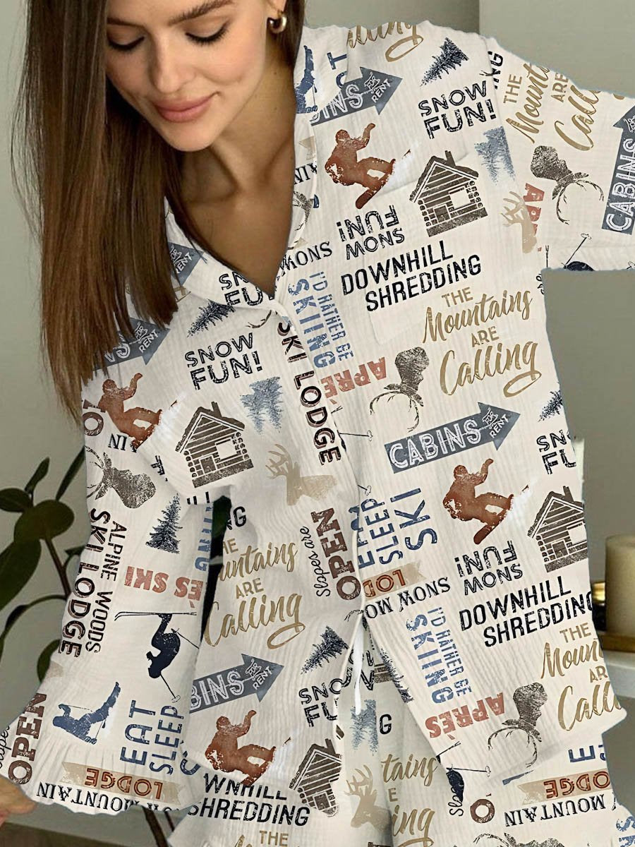 Women's Fashion Ski Print Cotton Cardigan Set