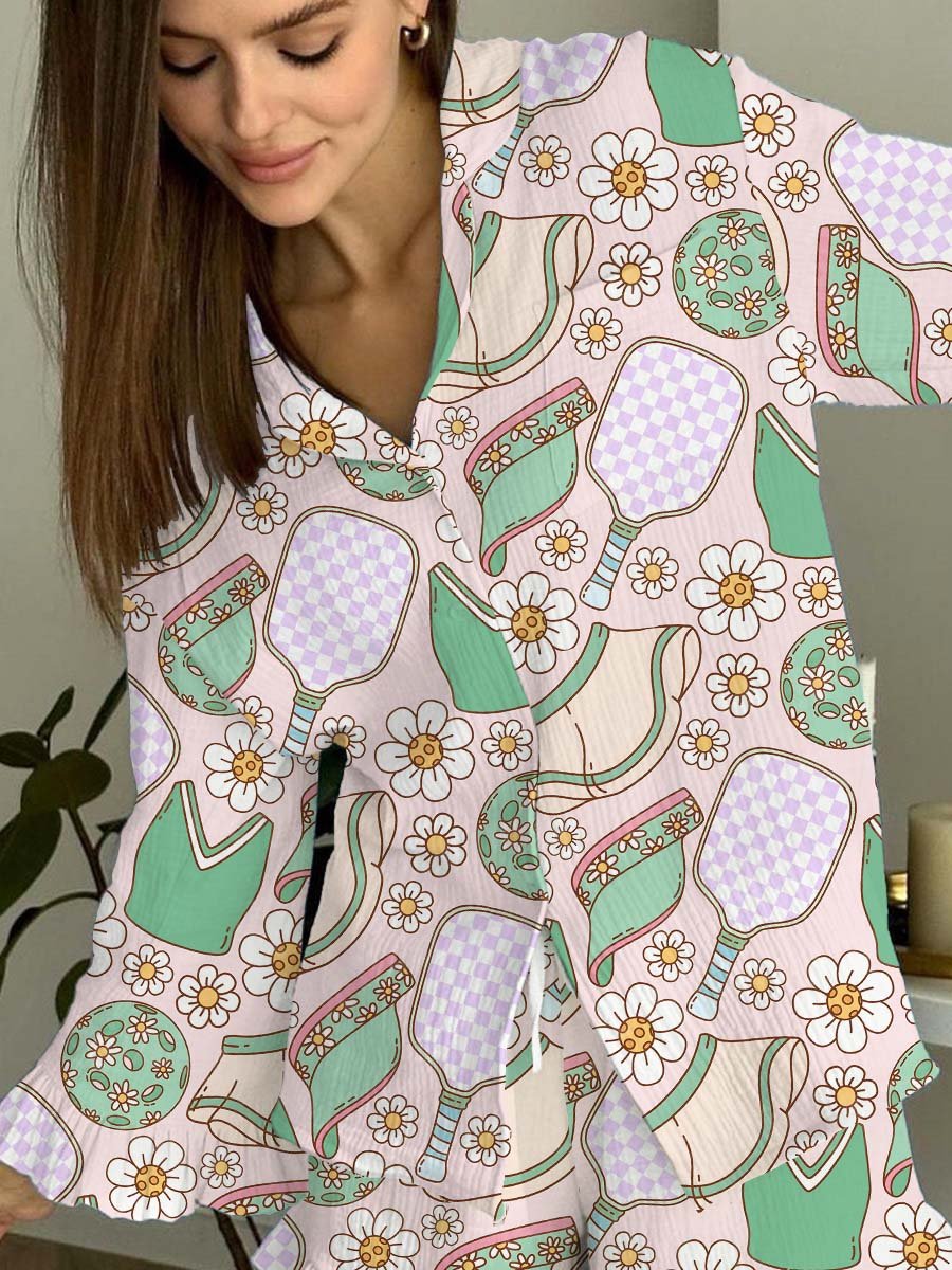 Women's Cricket Print Long Sleeve Pajama Set