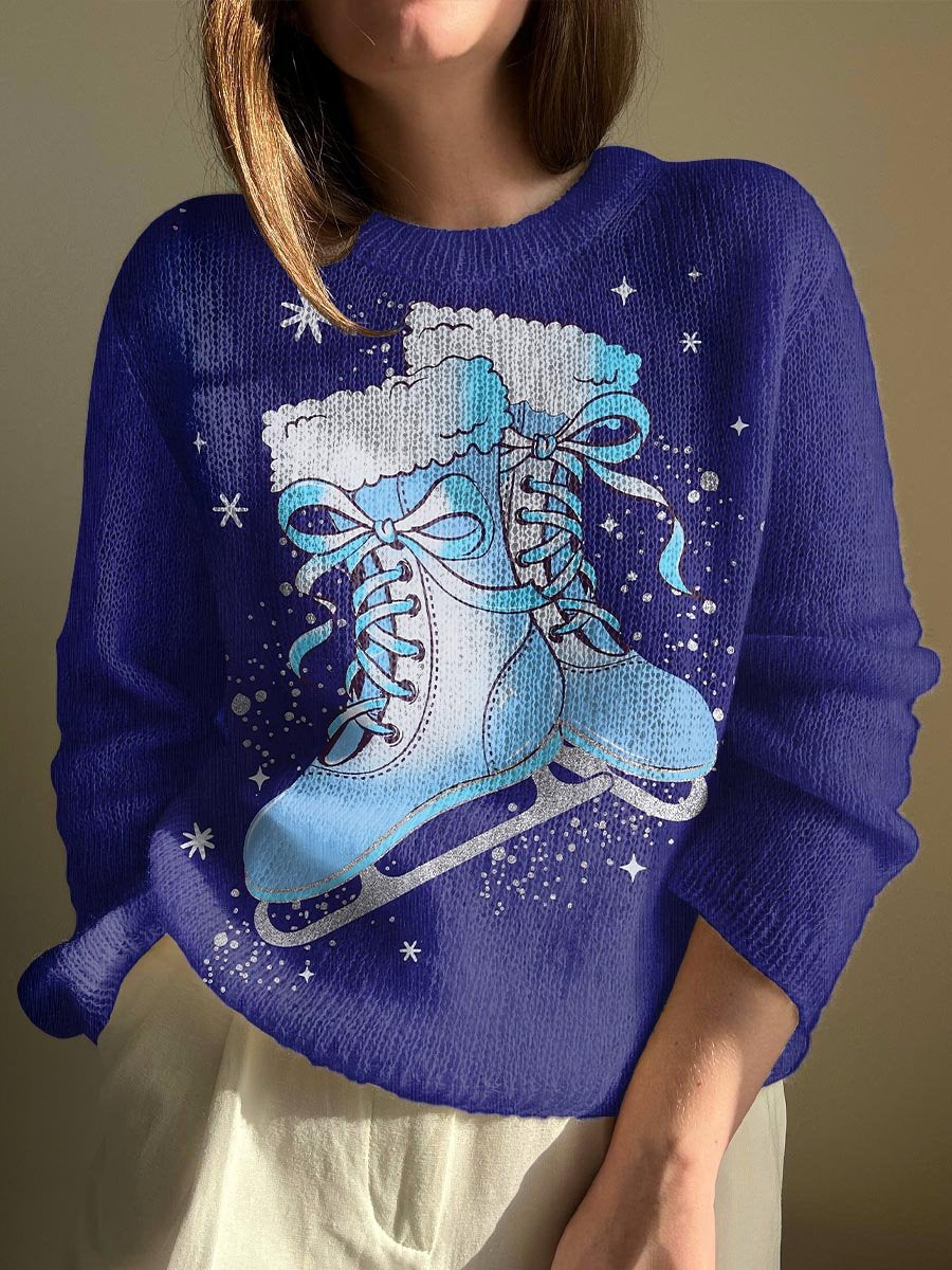 Women's Navy Skate Print Crew Neck Sweater