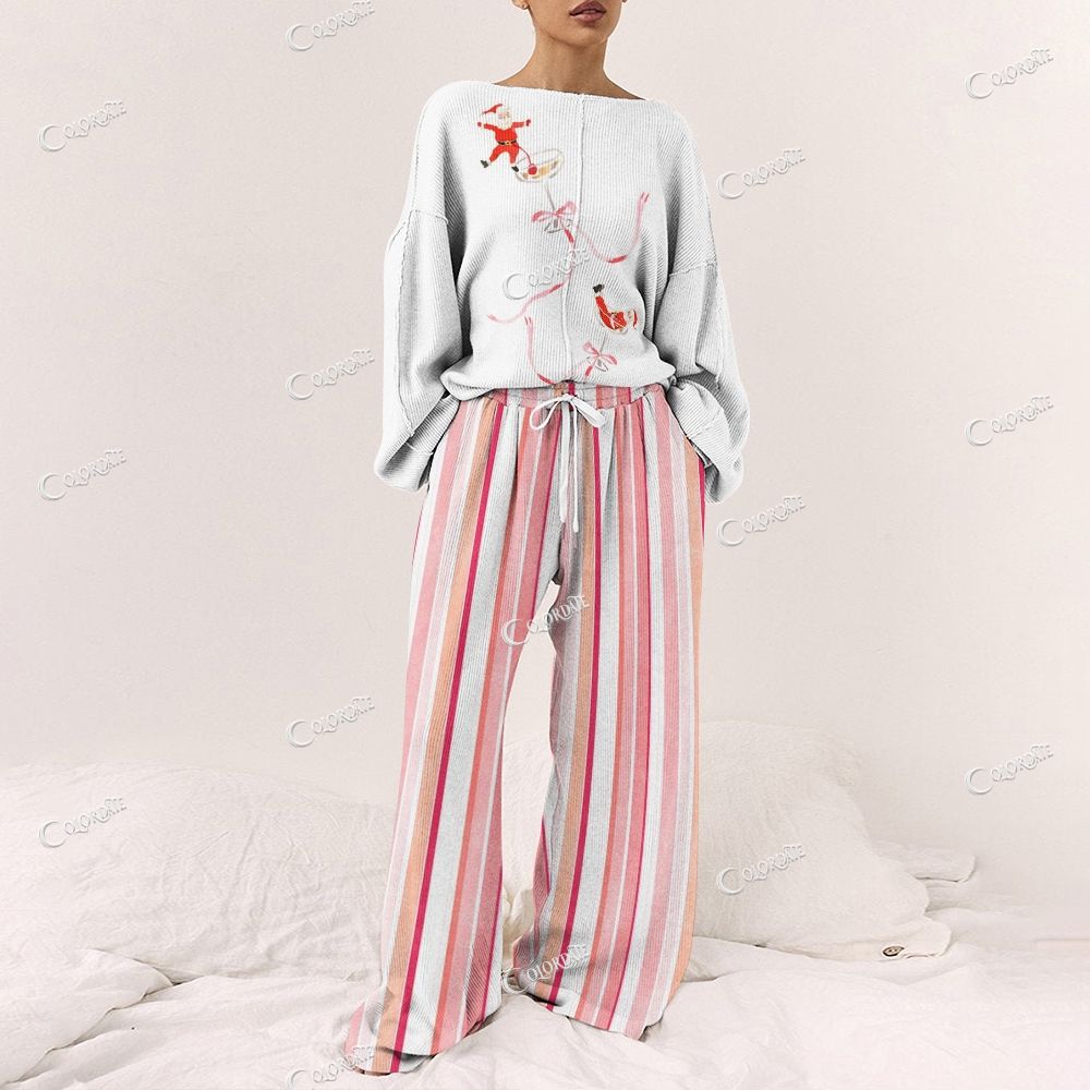 Women's Miss Santa Striped Print Cardigan Homewear Set