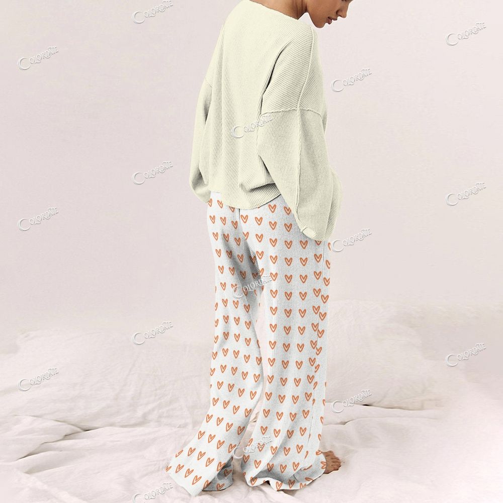 Heart-Patterned Pink-Striped Loungewear Set For Women