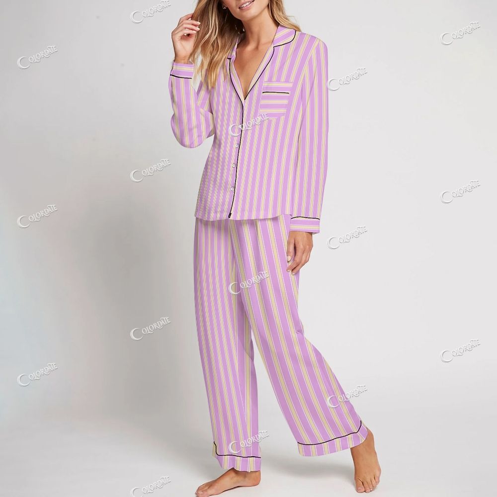 Colordate Women's Pink Striped Print Home Long Sleeve Suit