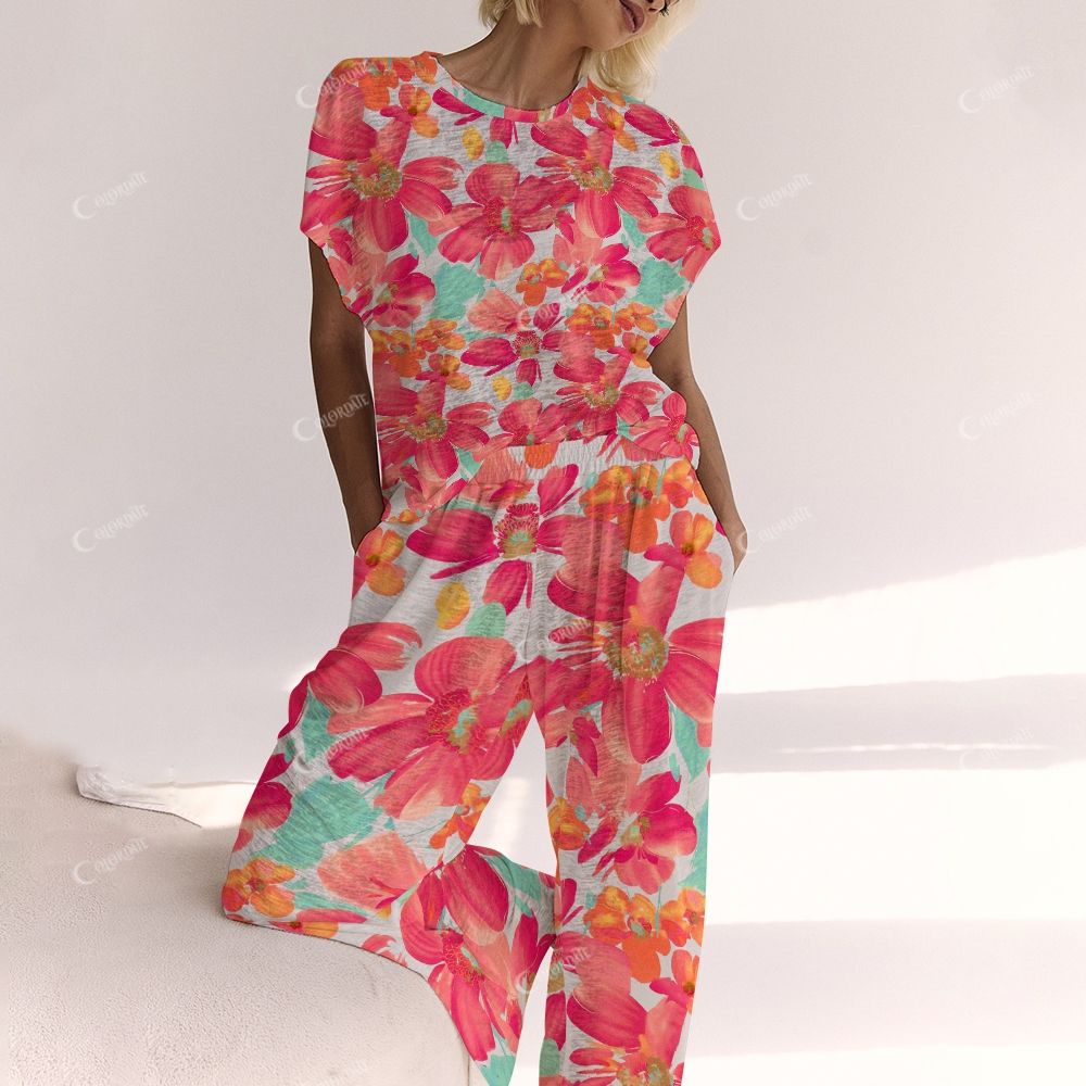 • Colordate Pink Flower Print Ladies Lounge Suit