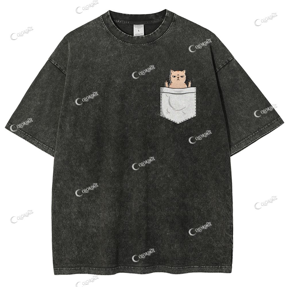 Unisex Pocket Cat Printed Washed Tee$27.99 USD