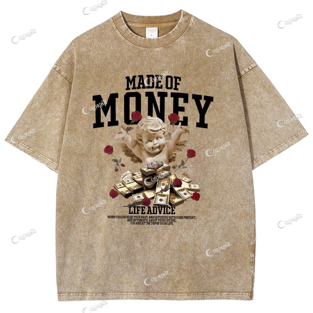 Unisex Made Of Money Printed Washed Tee$27.99 USD