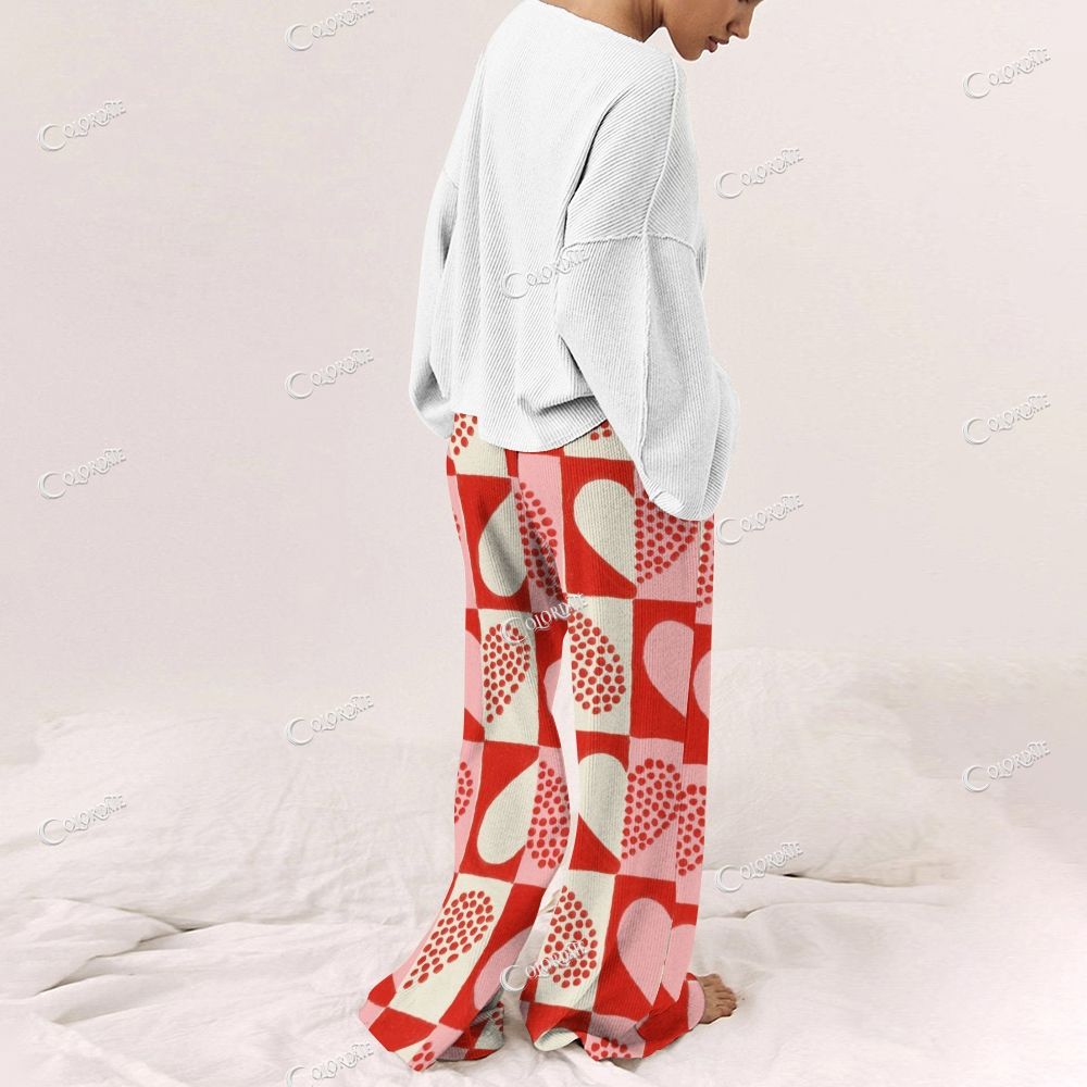 Women's White "Love" Bear & Red Heart Print Long Sleeve Pajama Set