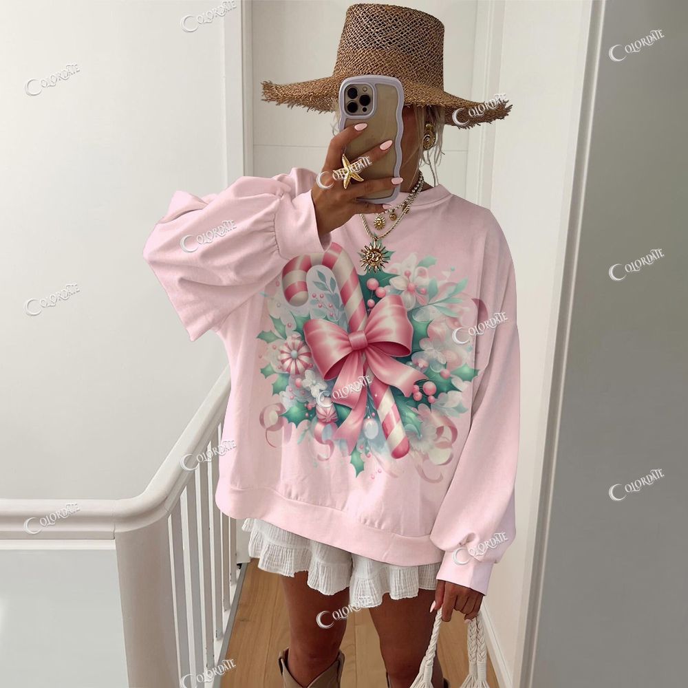 • Women's Romantic And Simple Candy Sticks Casual Crew Neck Sweatshirt