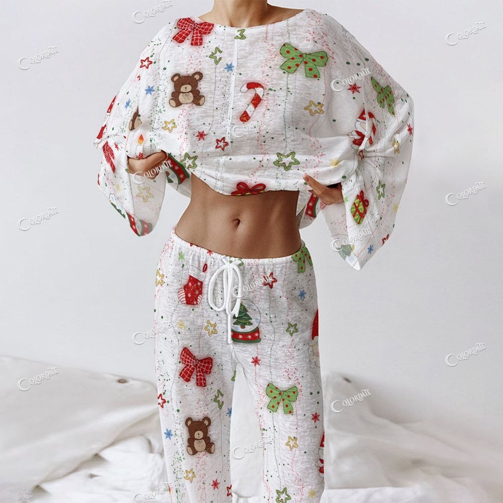 • Colordate Cute Bears And Christmas Tree Prints Loungewear Set For Women