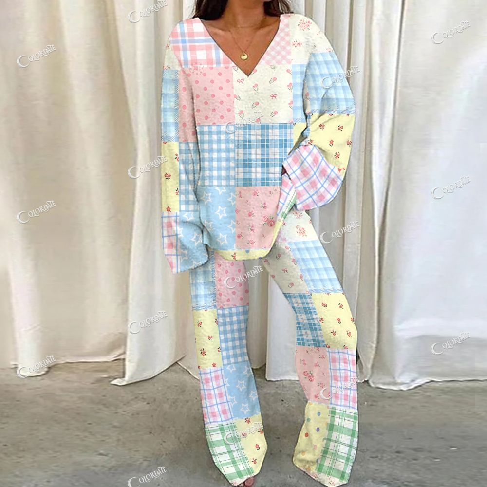 Women's Bohemian Colorful Long Sleeve Pajama Set