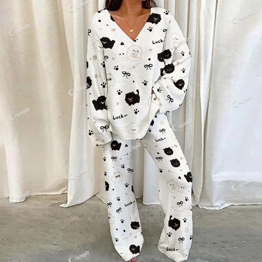• Colordate Women's Bows And Baseball Prints Long Sleeve Homewear Set