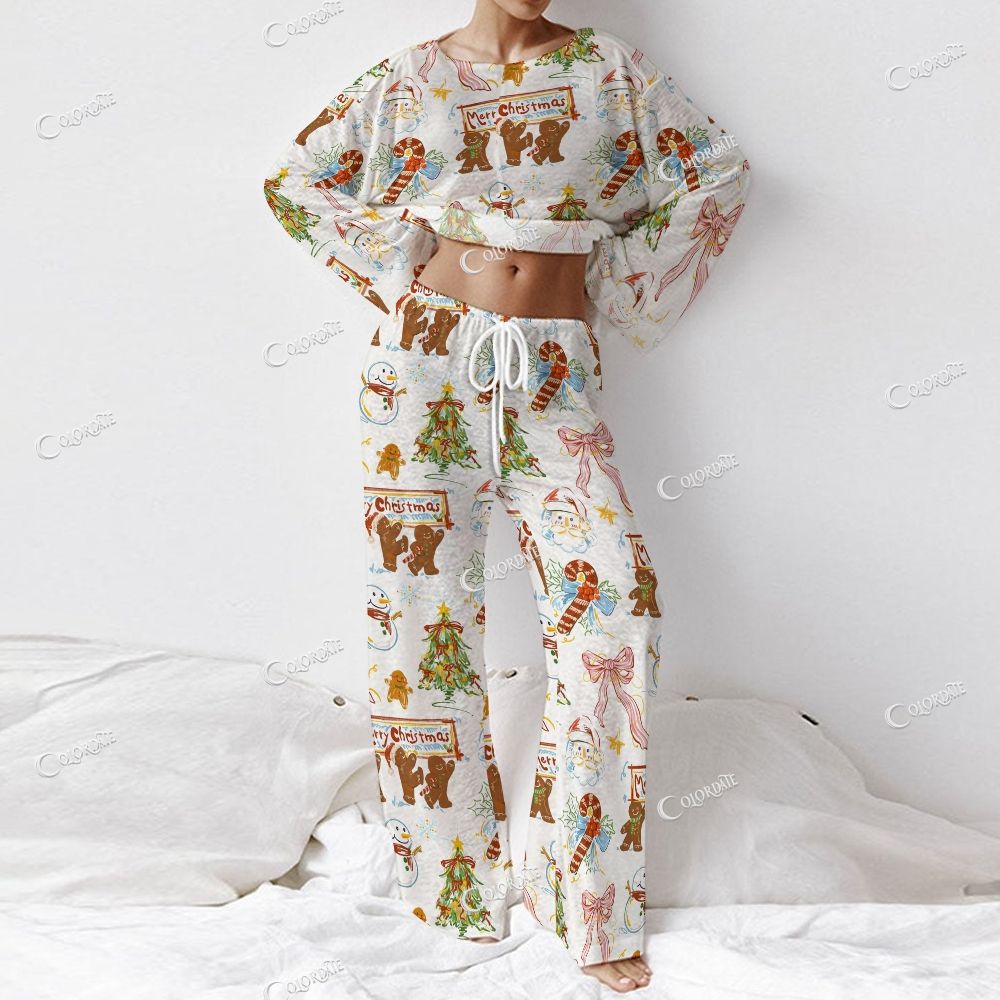 • Colordate Women's Gingerbread Man And Merry Christmas Print Long Sleeve Cotton Homewear Set