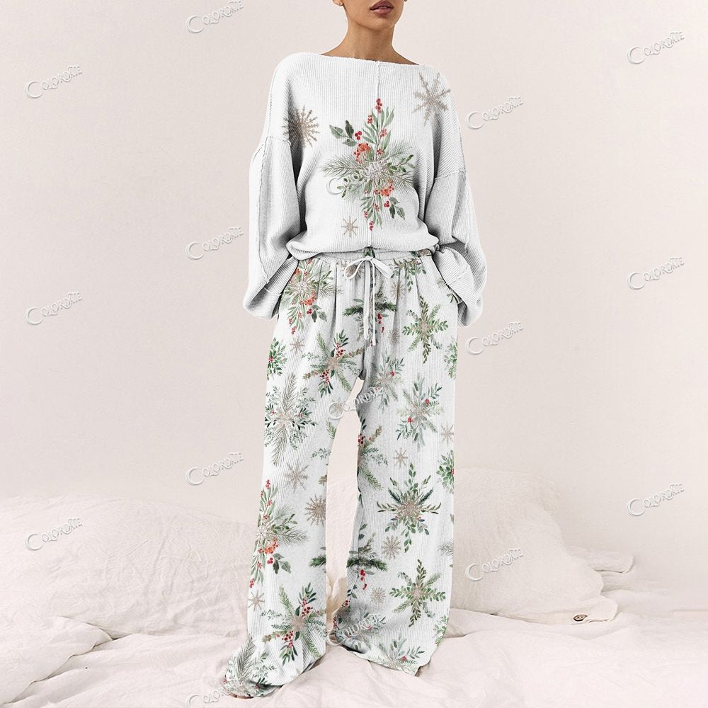 Colordate Floral And Snowflake Pattern Print Loungewear Set For Women