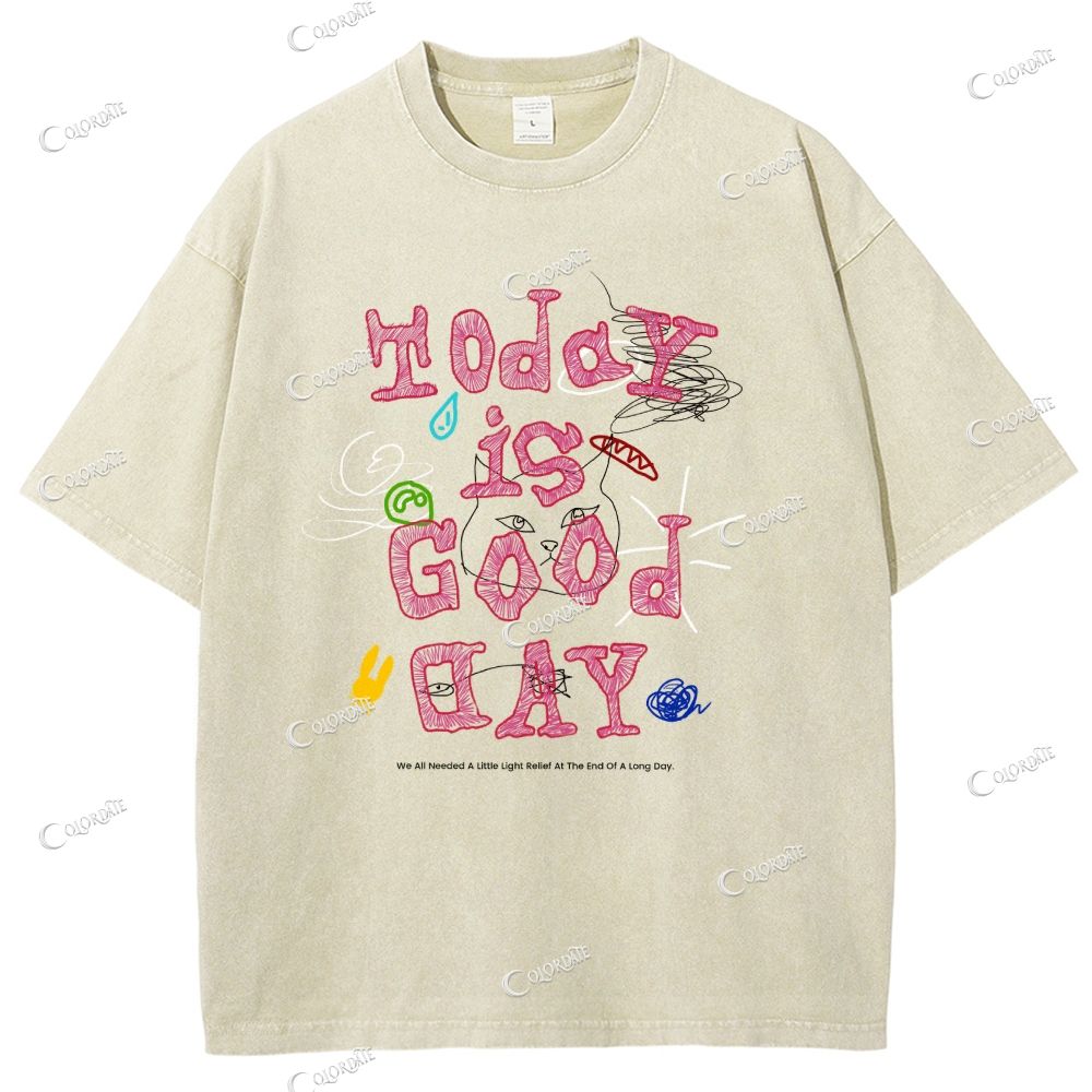 Unisex Today Is Good Day Printed Washed Tee