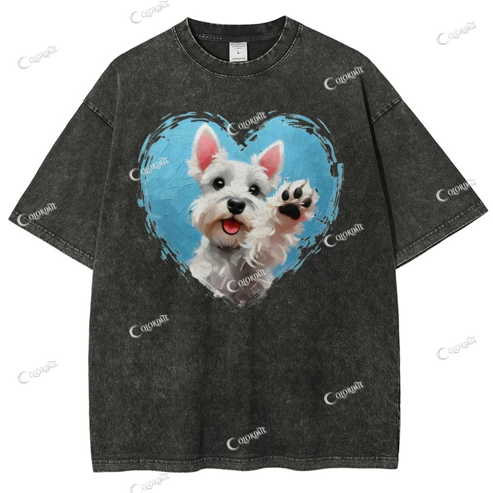 Unisex Love You Puppy Printed Washed Tee