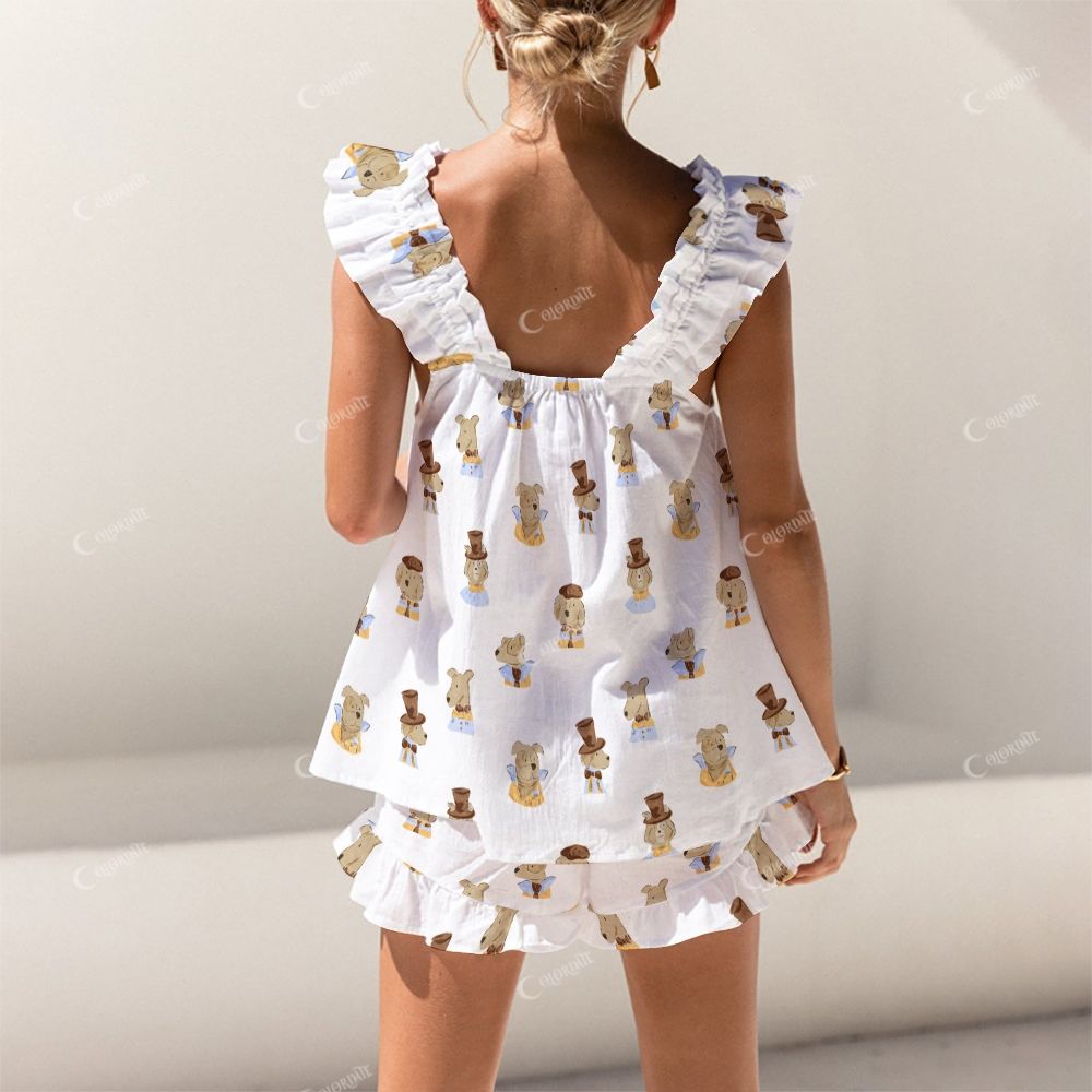 Colordate Hat Puppy Print Short Tank Top Shorts Pajama Set