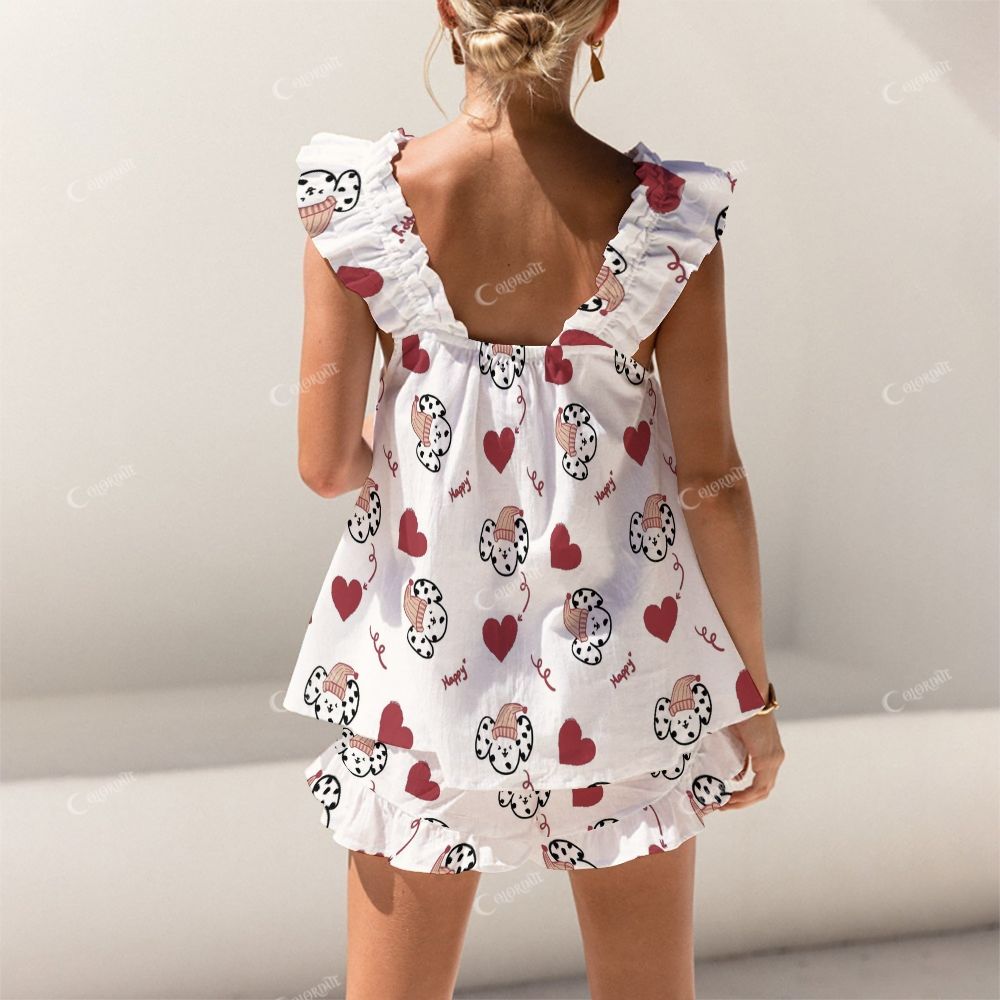 Colordate Heart-Shaped And Spotted Animal Prints Short Tank Top Shorts Pajama Set