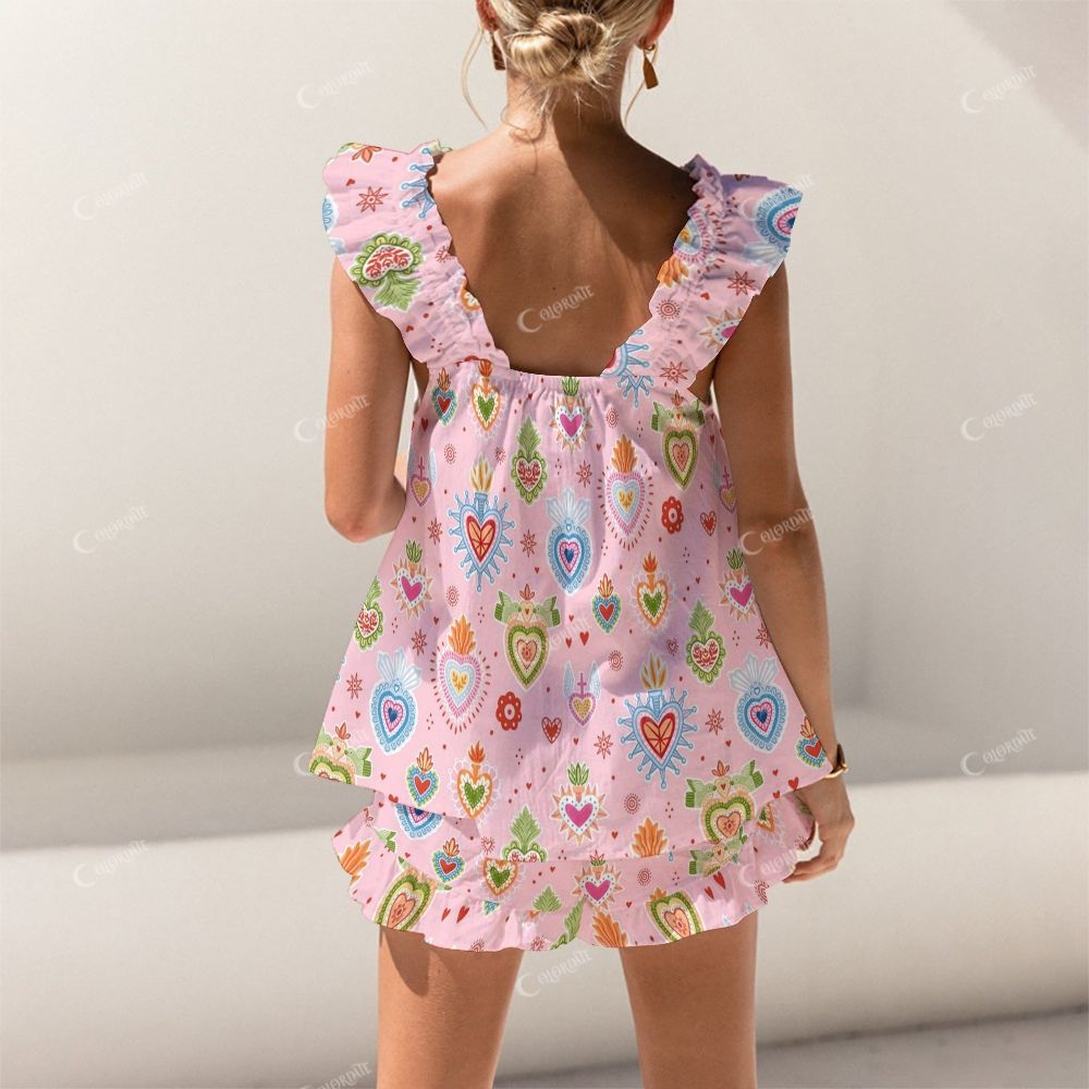 Colordate Heart-Shaped Print Short Tank Top Shorts Pajama Set