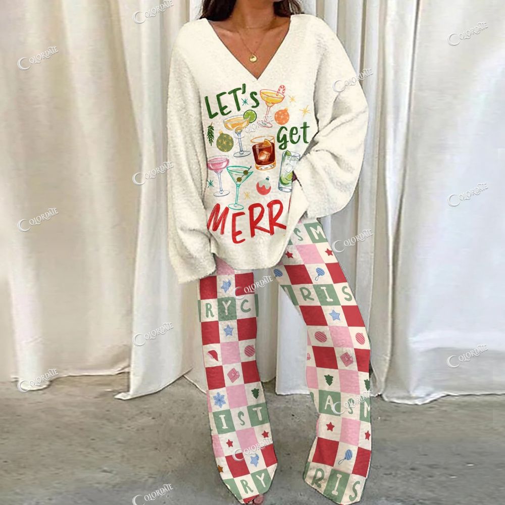 Colordate Let's Get Merry Print Loungewear Set For Women