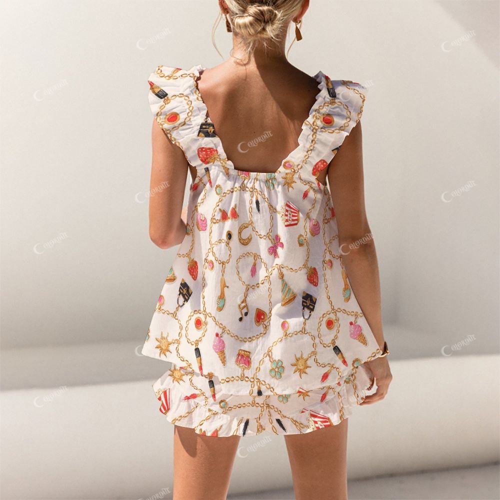 Colordate Metal Chain Print Short Tank Top Shorts Pajama Set