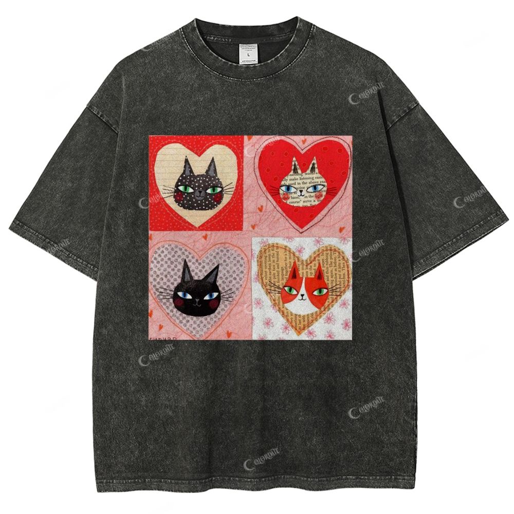 Colordate Unisex Cute Cat Printed Washed Tee