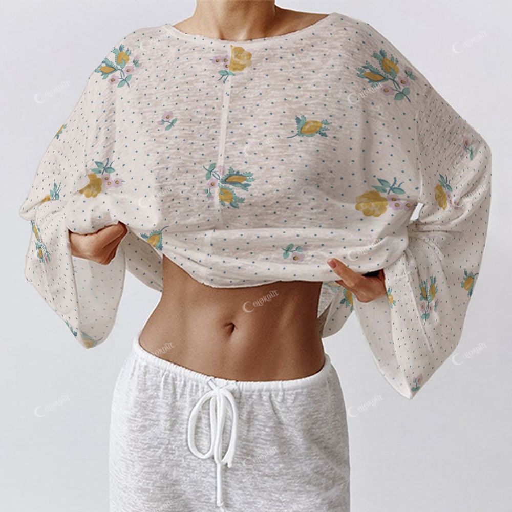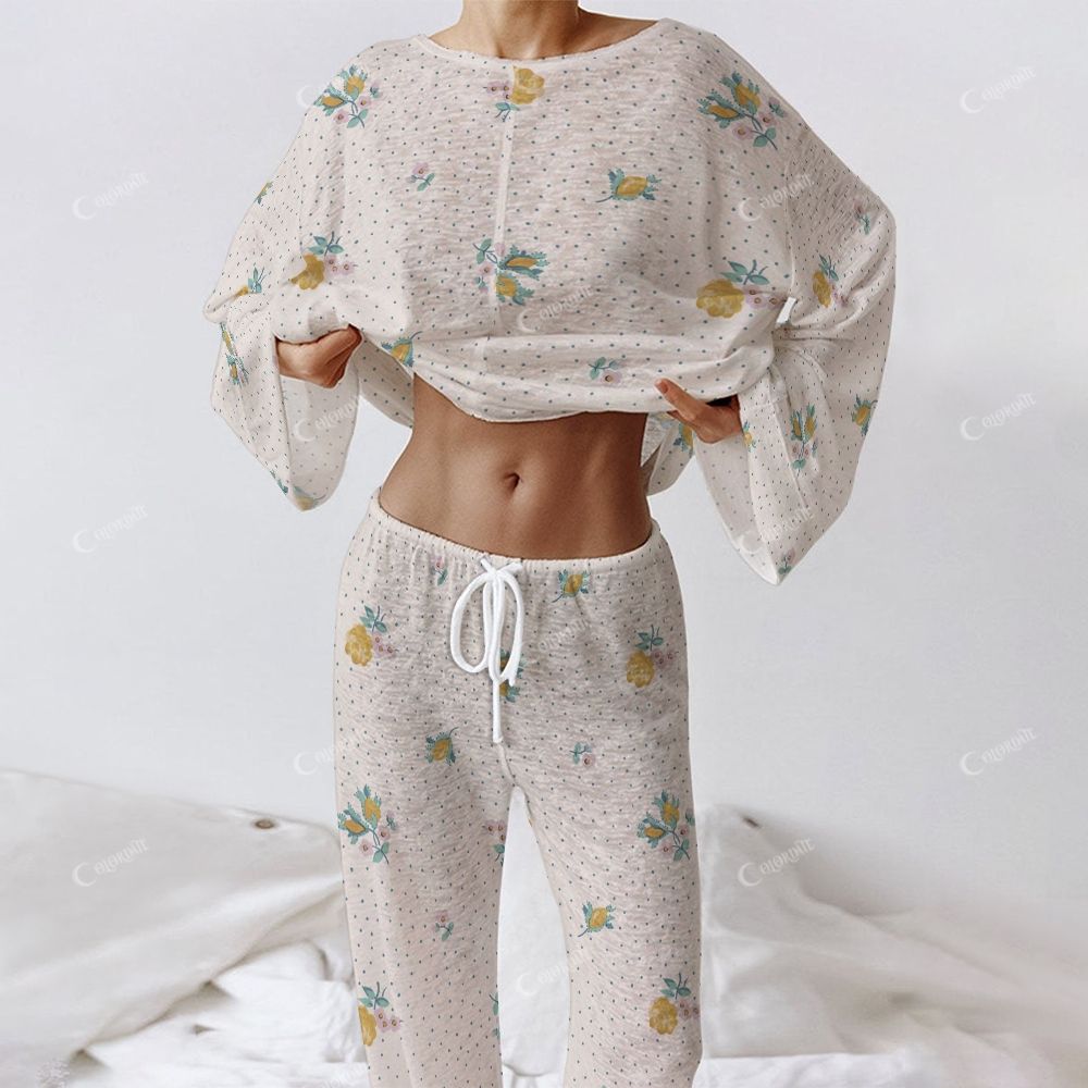 Colordate Women's Floral And Dot Prints Long Sleeve Cotton Homewear Set