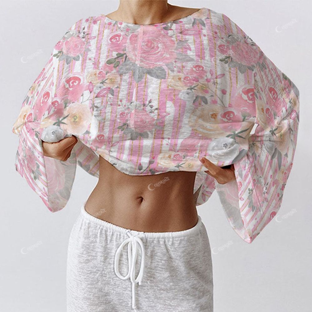 Colordate Women's Floral And Striped Patchwork Print Long Sleeve Cotton Homewear Set