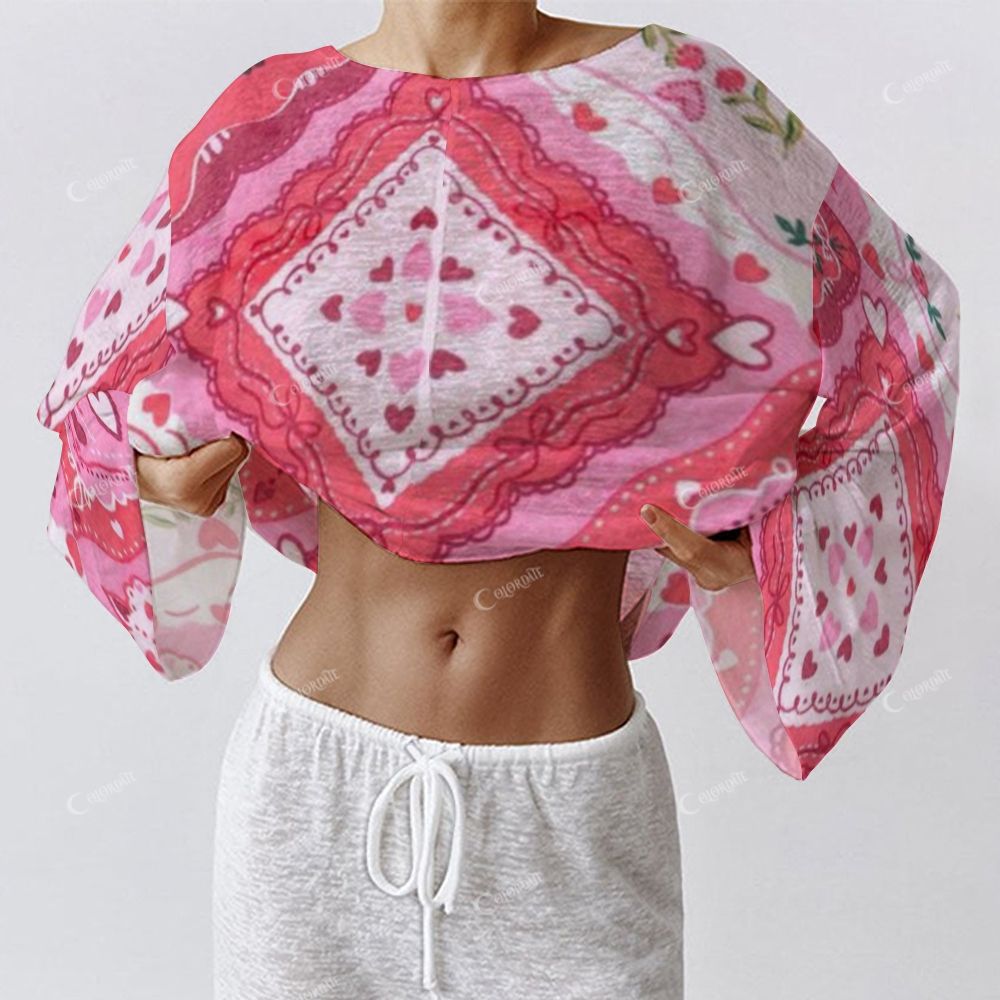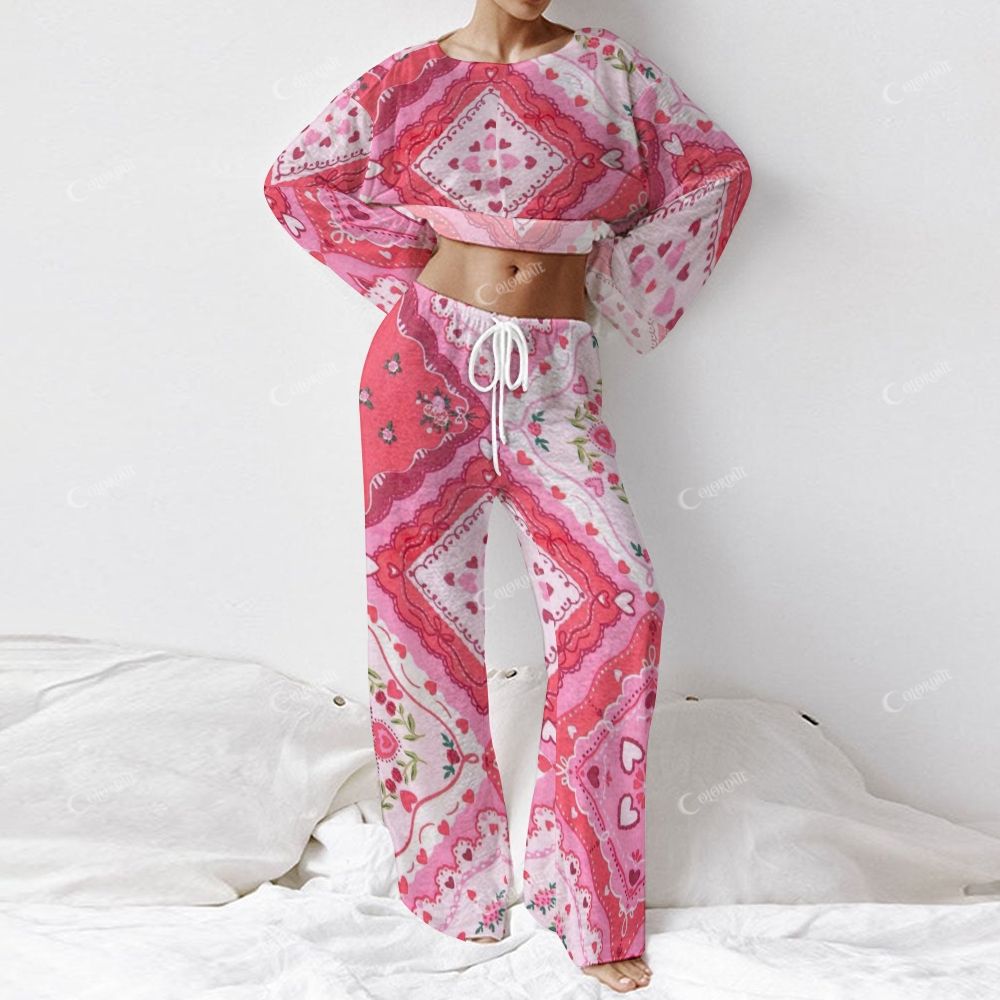 Colordate Women's Heart-Shaped And Floral Patchwork Prints Long Sleeve Cotton Homewear Set