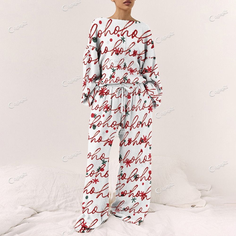 Colordate Women's Ho Print Long Sleeve Pajama Set