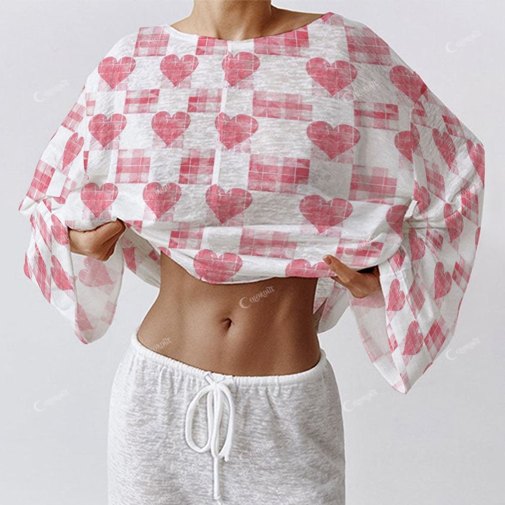 Colordate Women's Red Heart Print Long Sleeve Cotton Homewear Set