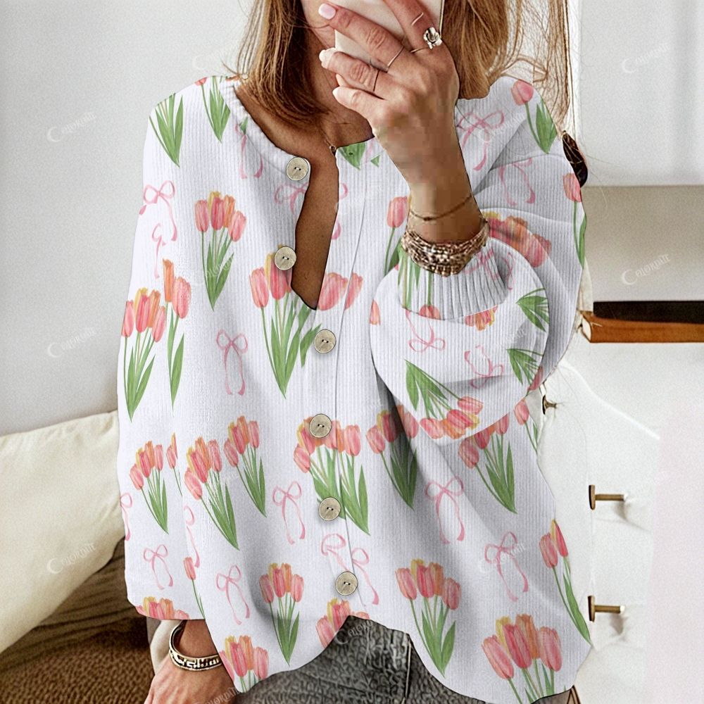 Colordate Women's Tulip Print Button Cardigan Sweater