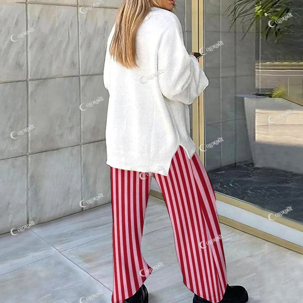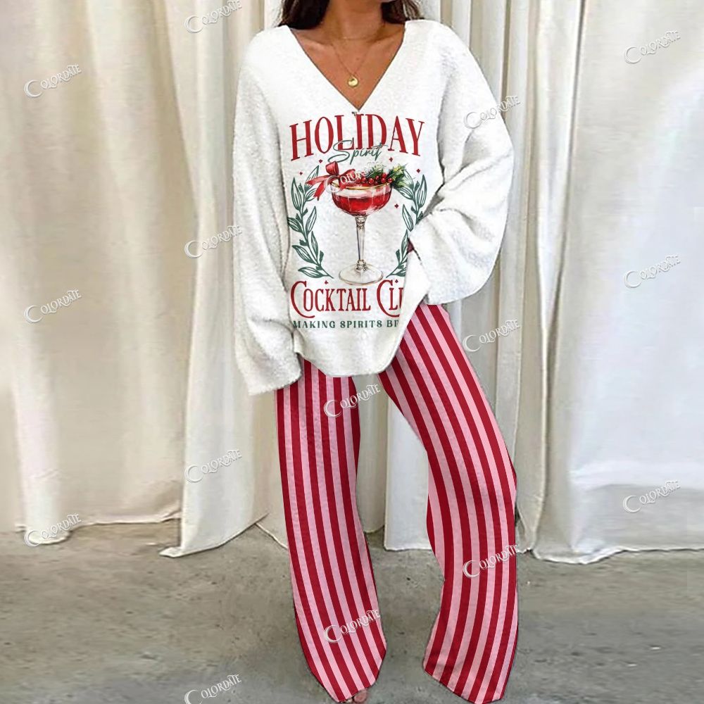 Loungewear Christmas Cocktail Red Stripes Set For Women