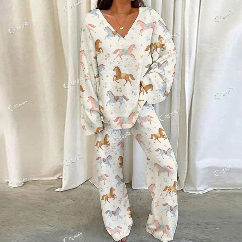 Playful Pony Print Loungewear Set For Women