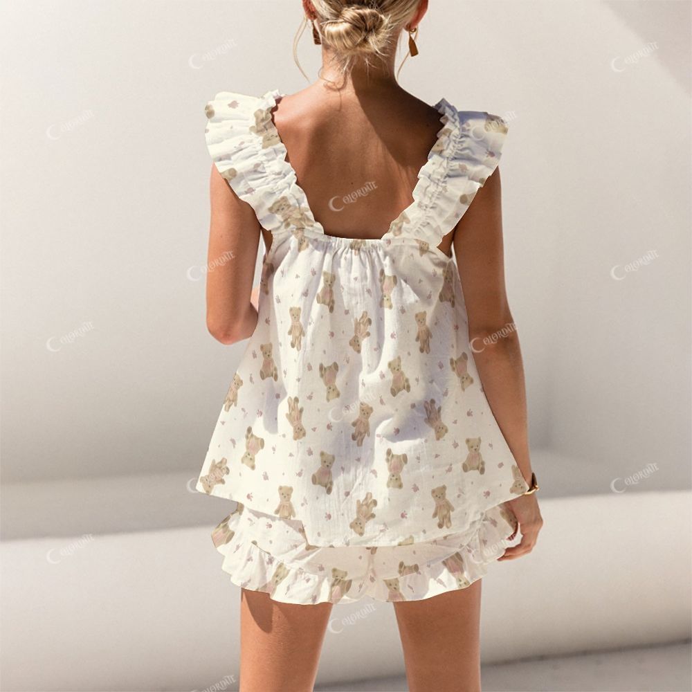 Short Tank Yellow Bear Top Shorts Pajama Set