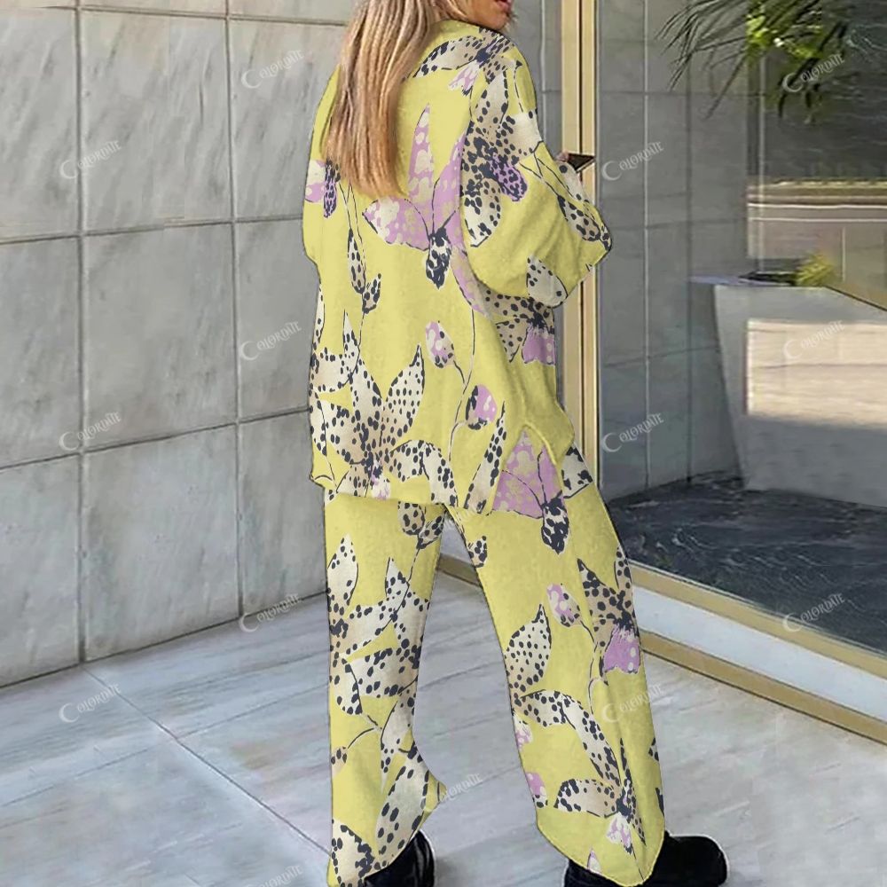 Speckled Floral on Yellow Loungewear Set For Women